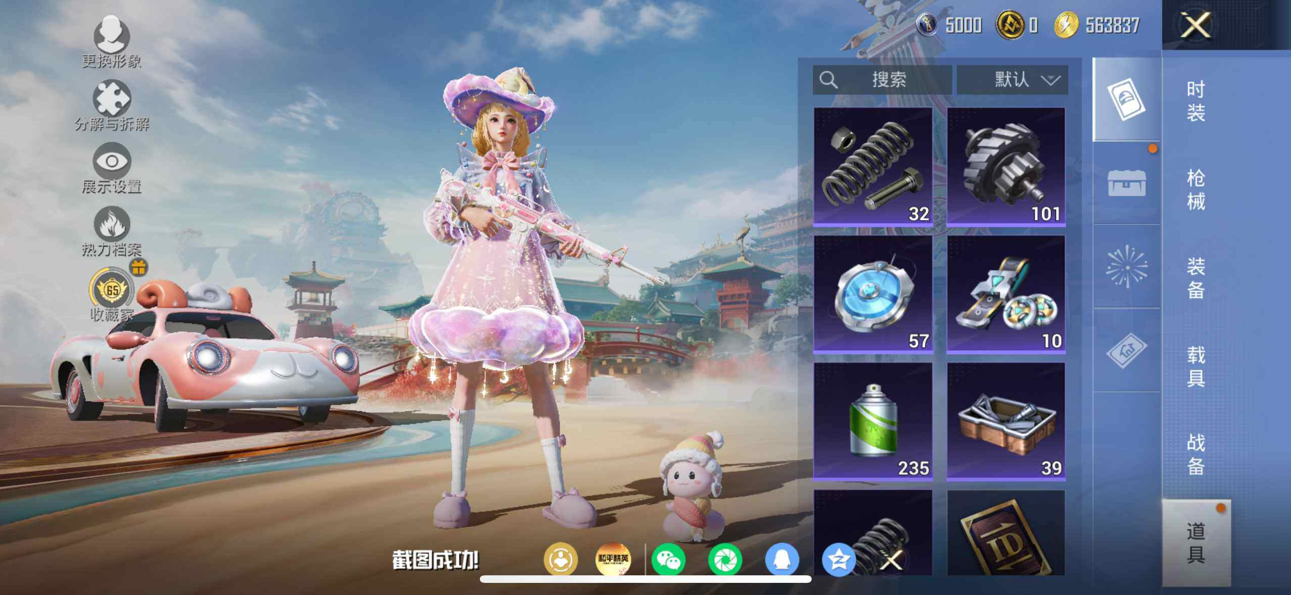 【46】苹果 手Q-7粉装-8特效枪-2载具-6粉色飞行器-59765热力值-14王牌印记-117套装-180枪皮