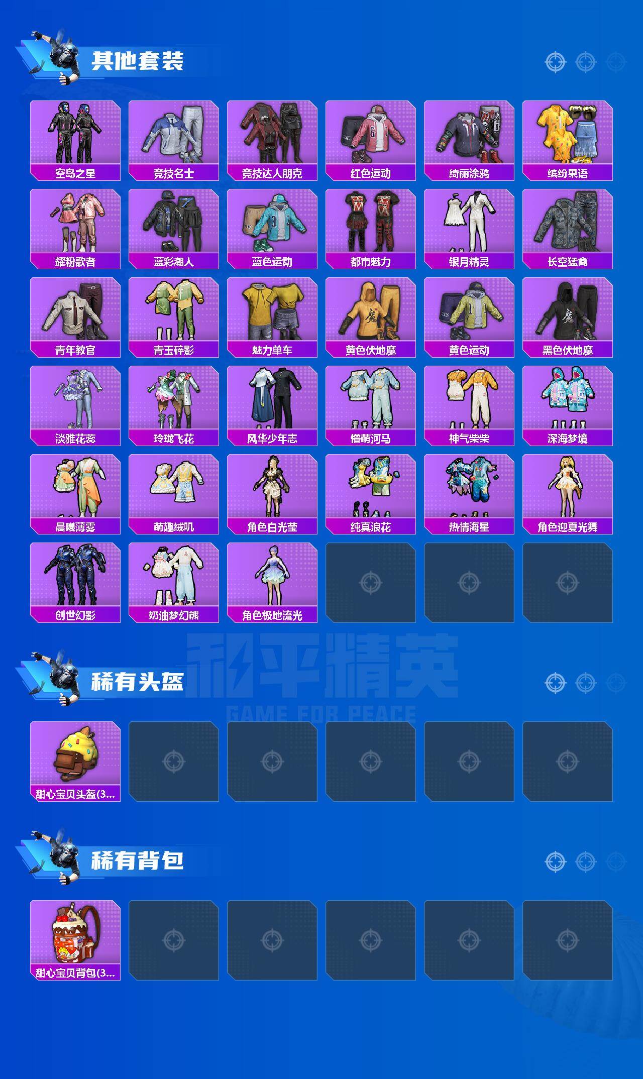 【粉色套装】:粉装-第五大道,角色-烟云彩露,角色-狂花道·不知火舞,角色-千金淑猫,角色-樱桃泡泡,粉装-星月云朵,角色-奇迹舞步 美雪