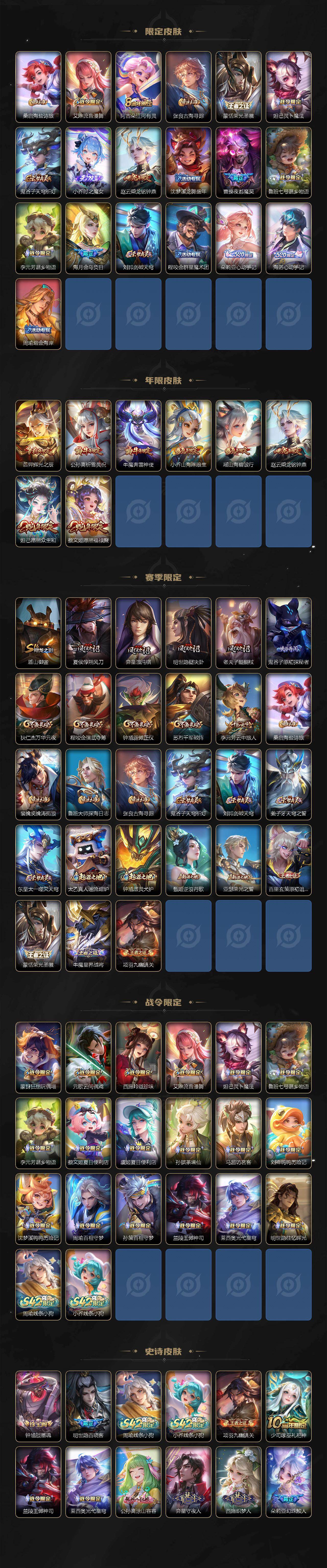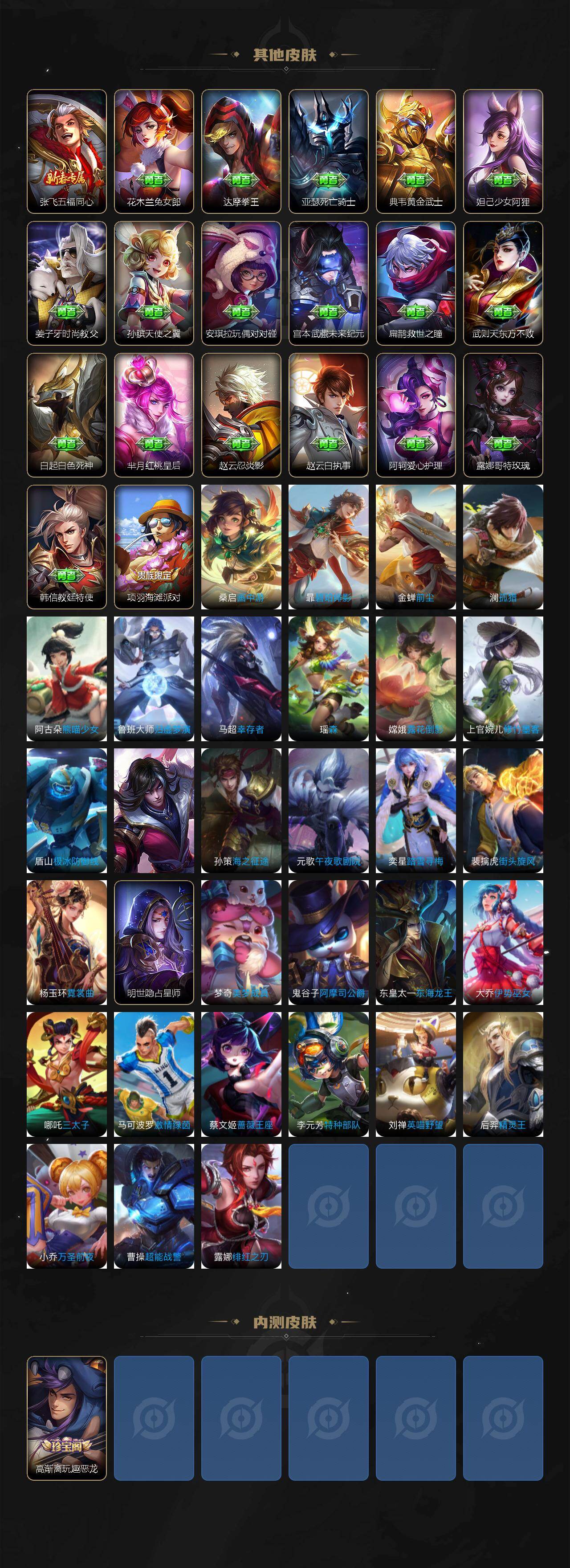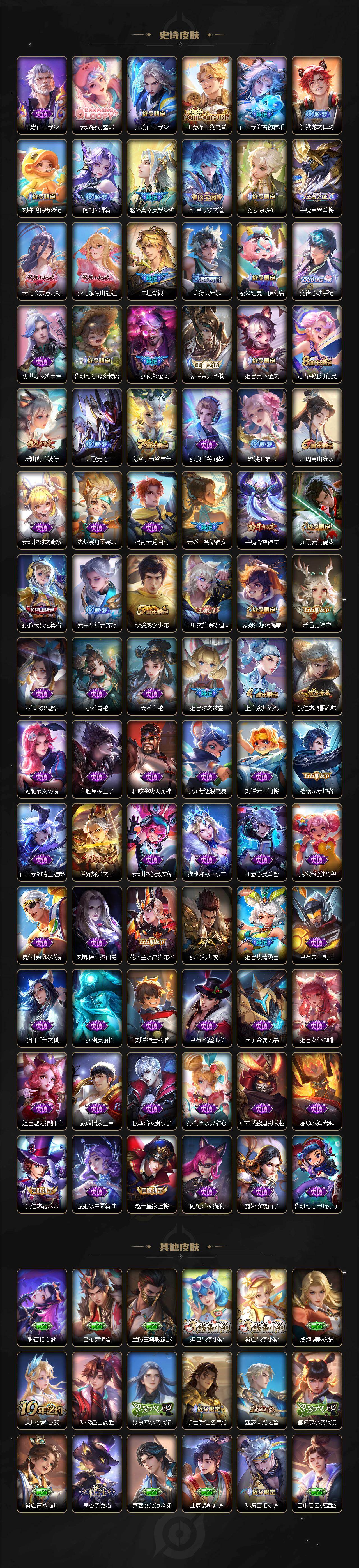 【英雄全皮】:元歌全皮,孙权全皮,朵莉亚全皮,大司命全皮,海诺全皮,少司缘全皮