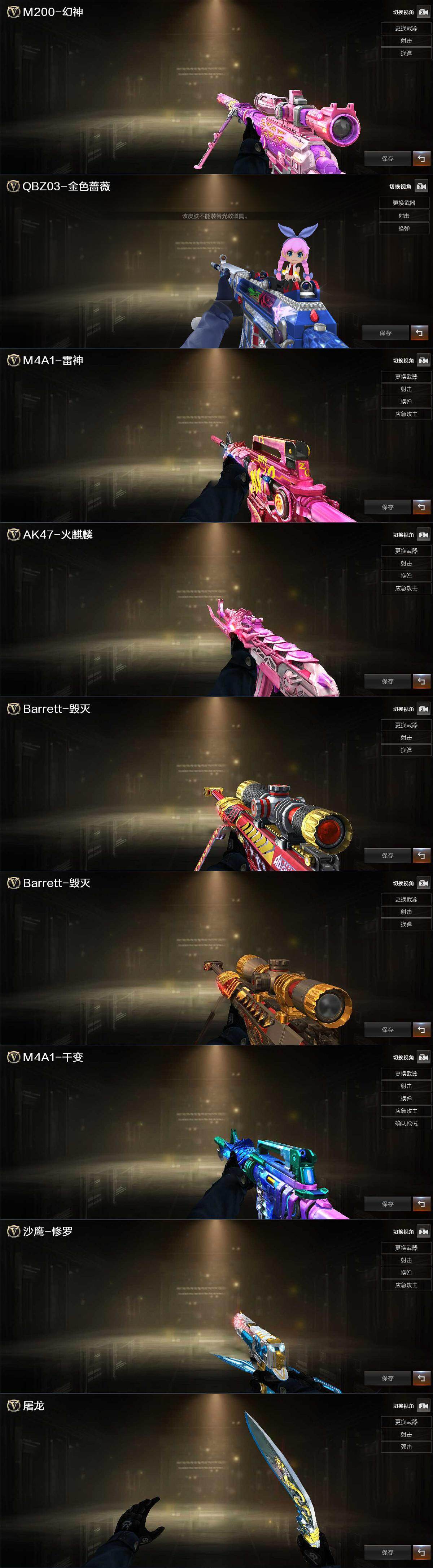 【热门武器】:QBZ03-金色蔷薇,M200-幻神,毁灭-孙三炮,COP 357-幻灵,沙鹰-修罗