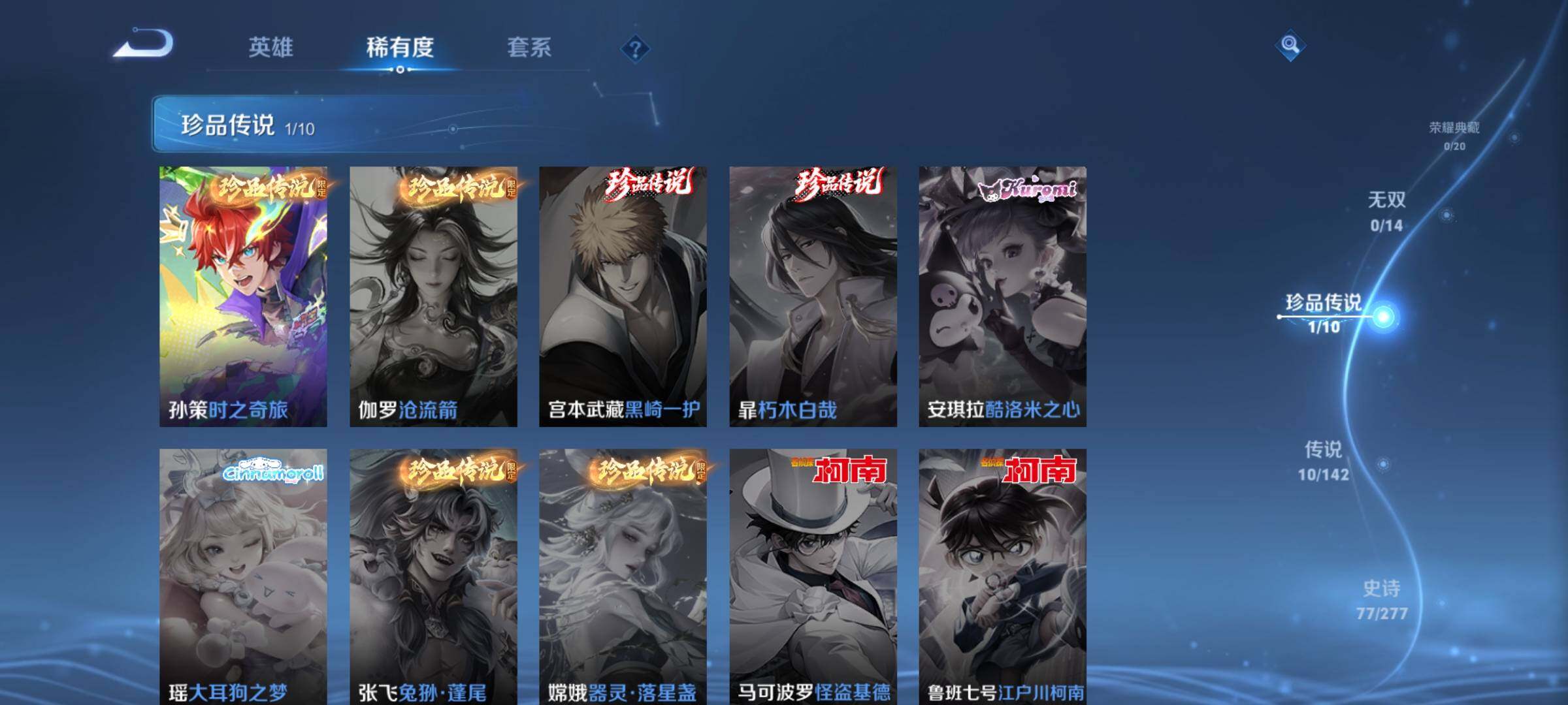 【传说皮肤】:女娲愿照千秋盛,澜愿照九州拓,云缨幻光神枪,嬴政玄雷天君,桑启鸣野蒿,孙策末日机甲,曜李逍遥 ,虞姬启明星使,孙