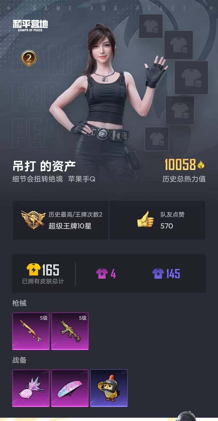 38套装/枪械2/装备49/战备33/王牌印记2/热力值10058/五级AKS