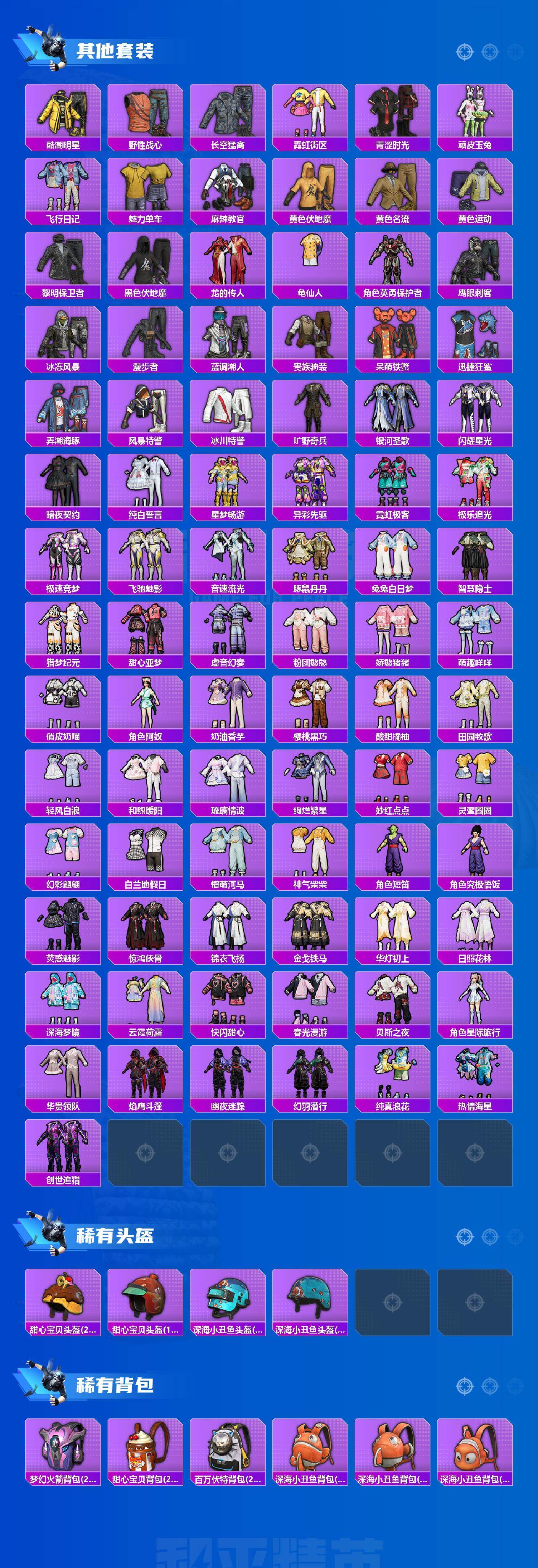 【粉色套装】:粉装-天使彩虹糖,粉装-骨龙祭渊,粉装-旋转彩虹,粉装-暗夜鎏金,粉装-飒粉甜心,角色-水仙星,角色-宙之时溯,角色-星云暗核,玩偶服-猪猪侠,角色-千金淑猫