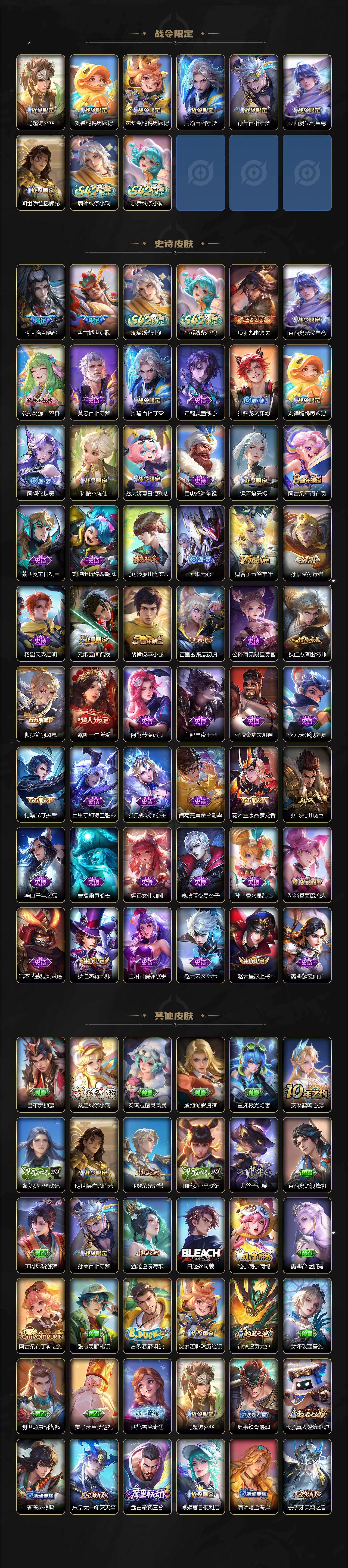 安卓Q-V7-最强王者段位-128英雄-185皮肤-1典藏皮肤-2无双-13传说-53史诗