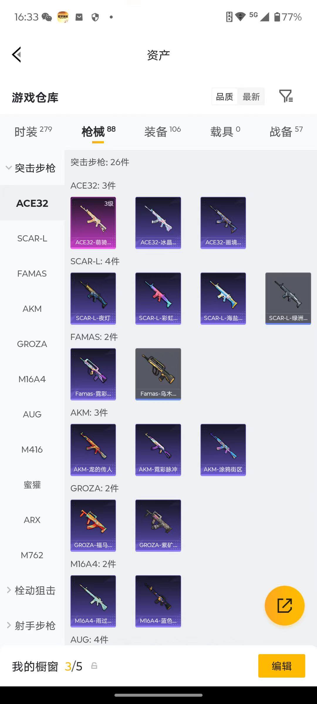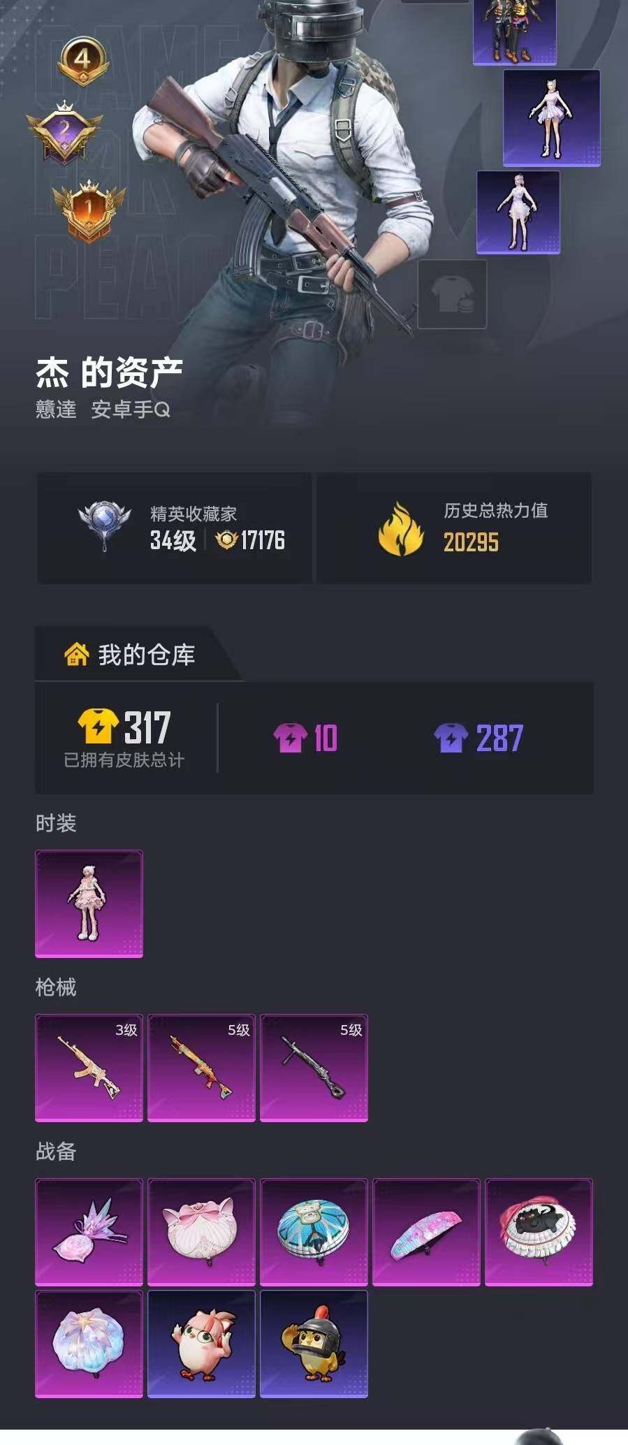 66套装/枪械3/装备106/战备57/王牌印记4/热力值20295/三级AC