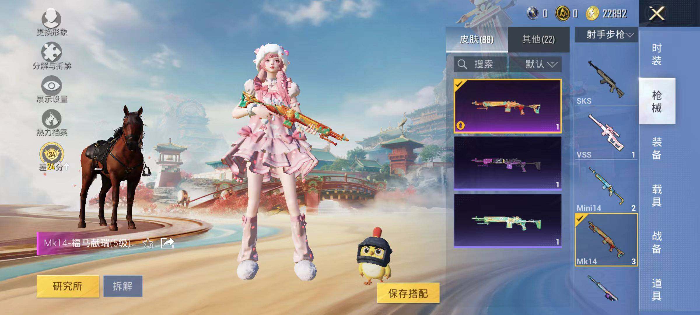 66套装/枪械3/装备106/战备57/王牌印记4/热力值20295/三级ACE32-萌骑漫游/五级Mk14-福马献瑞/五级DP-28-豹影疾电/深海小丑鱼/角色-羊梦糖心/ACE32-萌骑漫游/Mk14-福马献瑞/DP-28-豹影疾电/炫彩糖果飞行器/千金淑猫降落伞/荧海星豚降落伞/绯穹魔姬降落伞/异瞳寒姬降落伞/炫彩糖果降落伞/角色-超感刻度/套装-雪国风尚/套装-炫彩糖果/套装-马上有钱/