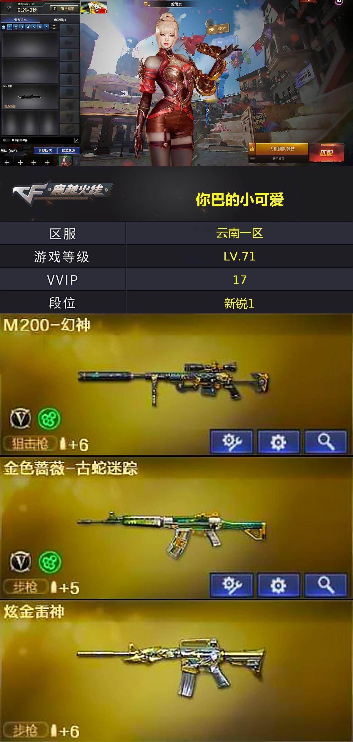云南一区-15V-1王者武器数-1炫金武器数【热门武器】:M200-幻神,金