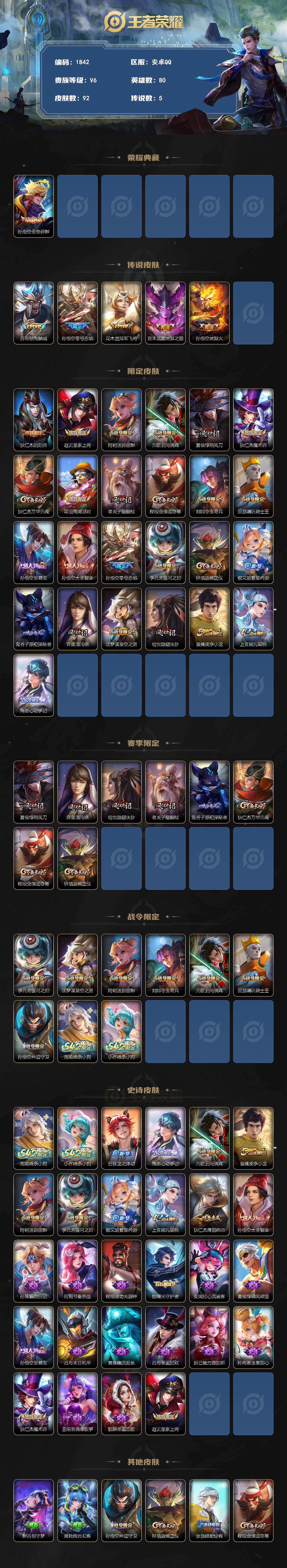 【92皮1典藏5传说 全息碎影 零号赤焰 至尊宝 大圣娶亲 小猴子号】安卓Q-V6-永恒钻石III段位-80英雄-92皮肤-1典藏皮肤-5传说-27史诗