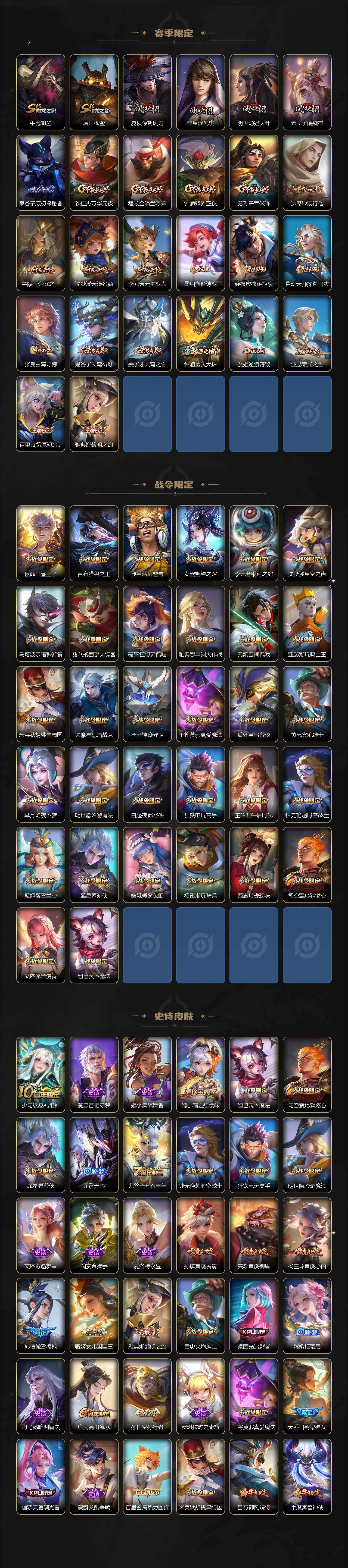 【传说皮肤】:后羿神树通天,桑启鸣野蒿,澜逐花归海,艾琳觅芳踪,甄姬至美化雀舞,李白诗剑行,百里守约碎云,橘右京