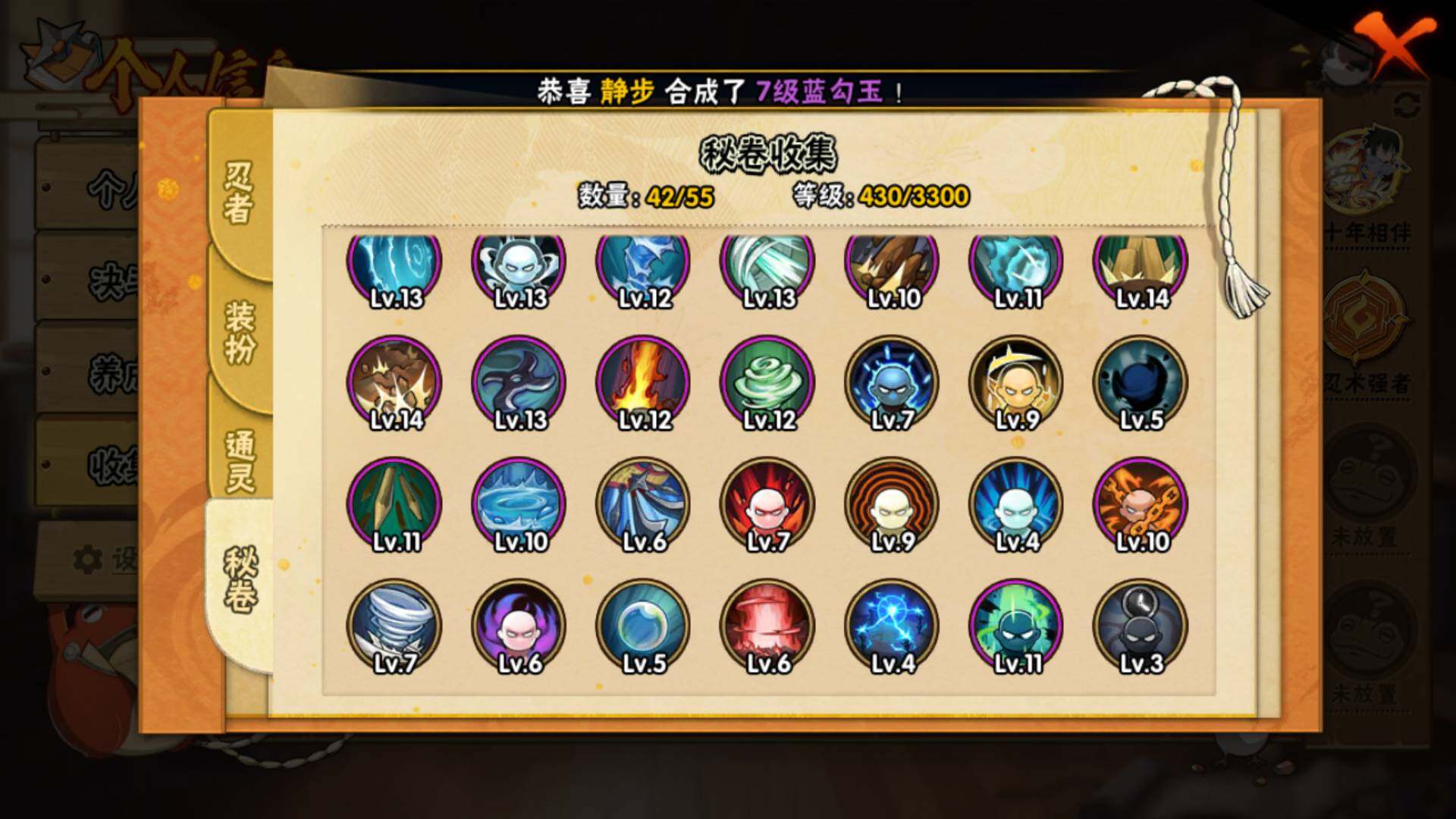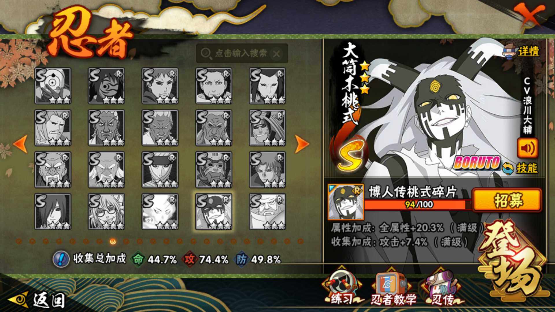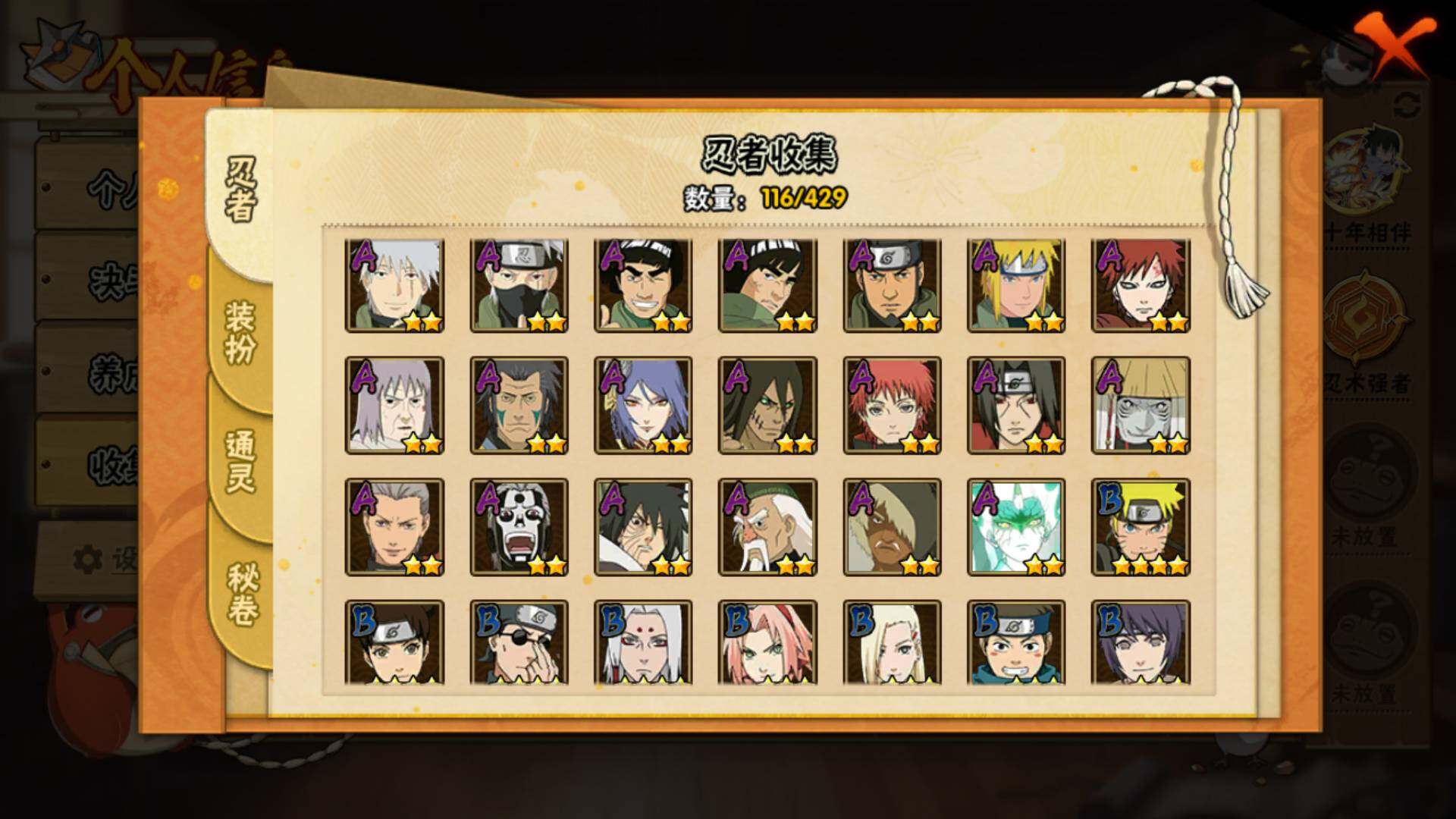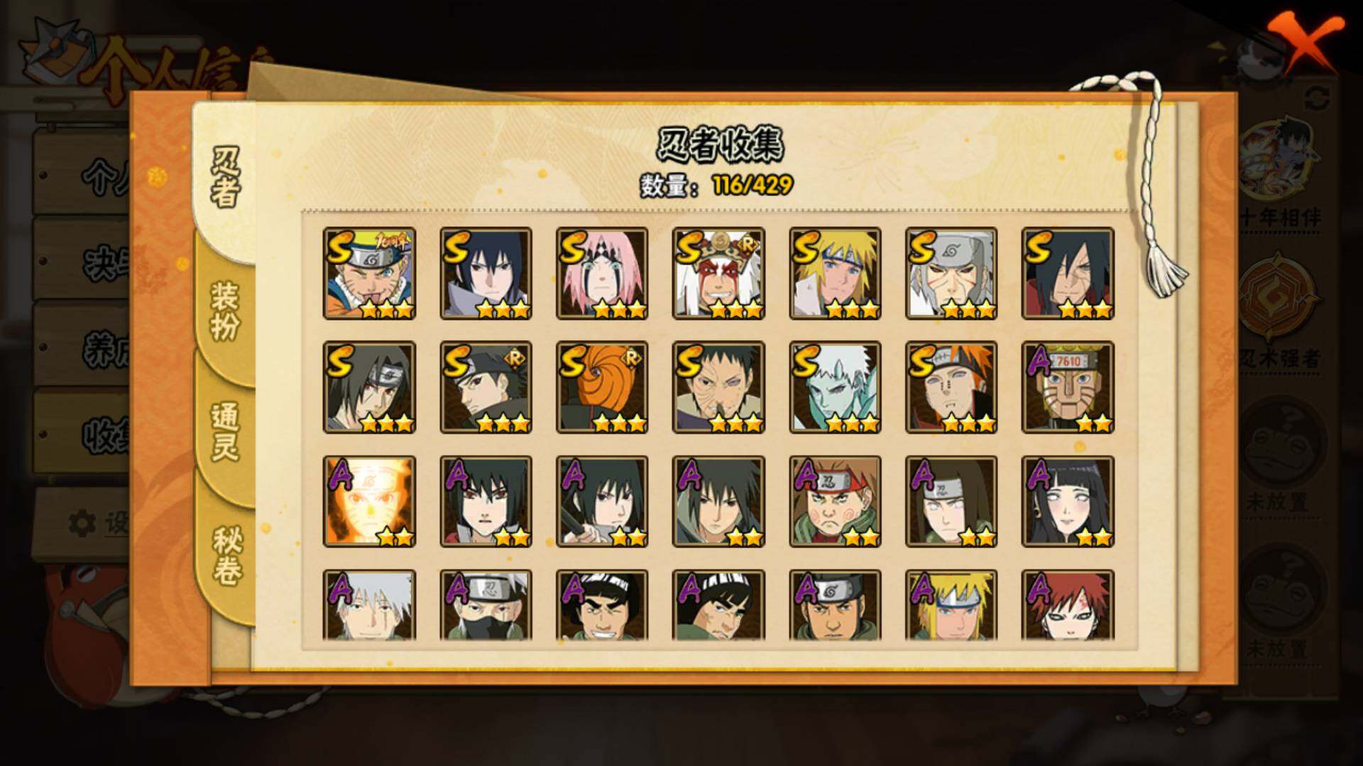 【S级忍者】:千手扉间「秽土转生」(3星),宇智波斑「秽土转生·解」(3星),春野樱「忍界大战」(3星),宇智波带土「忍界大战」(3星),宇智波鼬「须佐能乎」(3星),宇智波止水「须佐能乎」(3星),自来也「舞之豪杰」(3星),波风水门(3星),佩恩「天道」(3