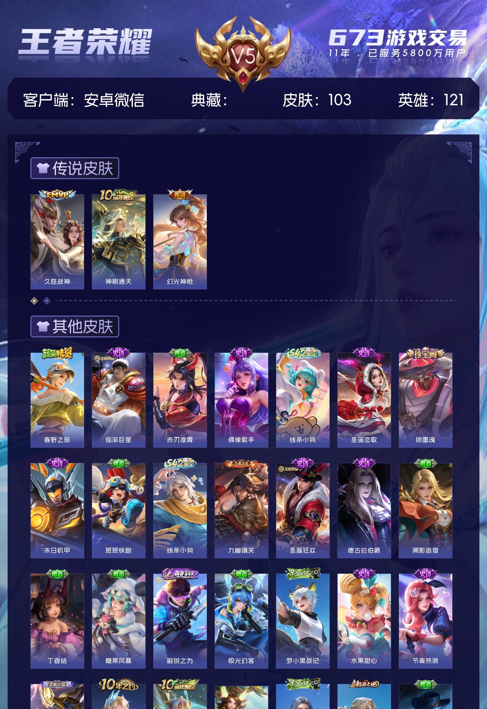 V5 皮肤103 英雄121 永恒钻石 传说3