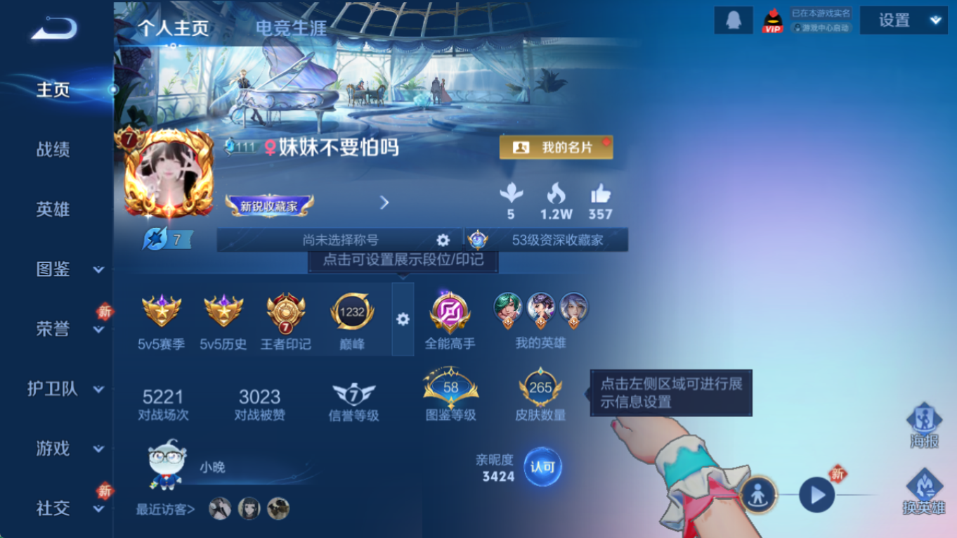 凯典藏!皮肤数量265印记总数7V7绝世王者可修改账号类型2