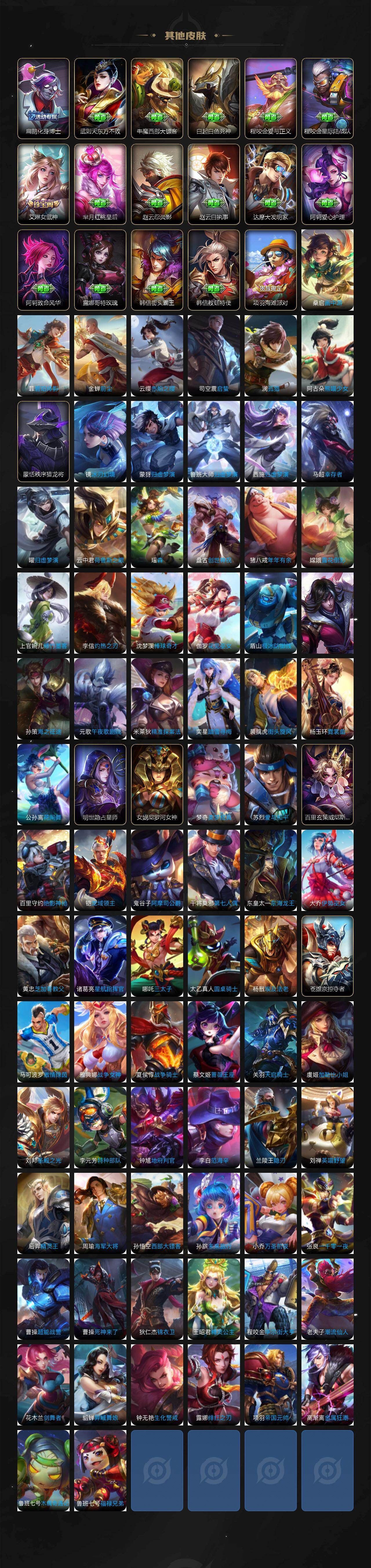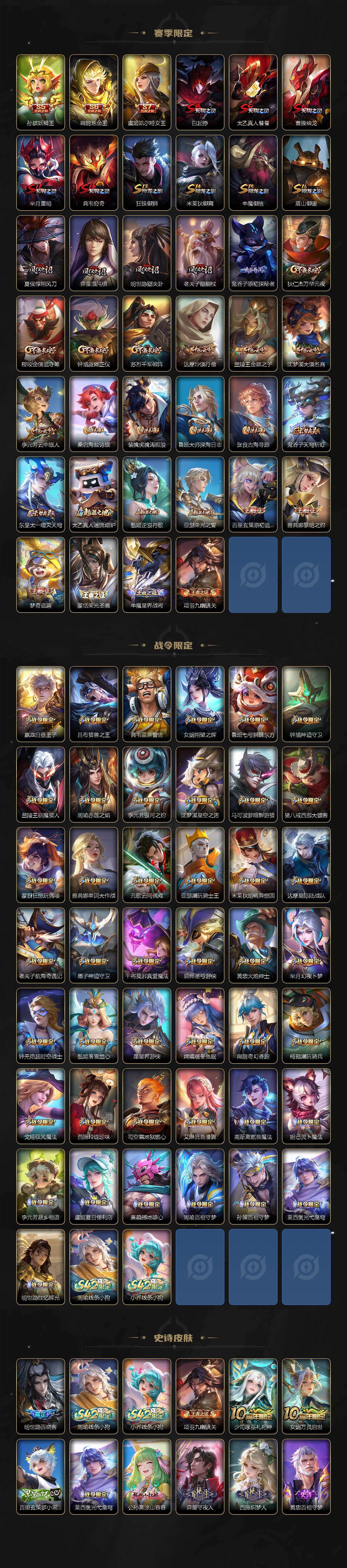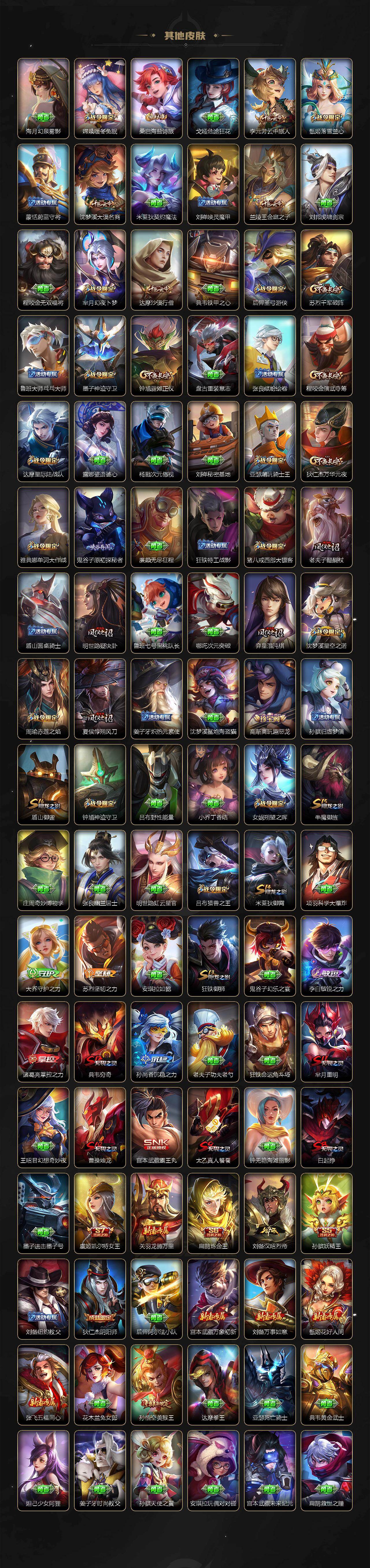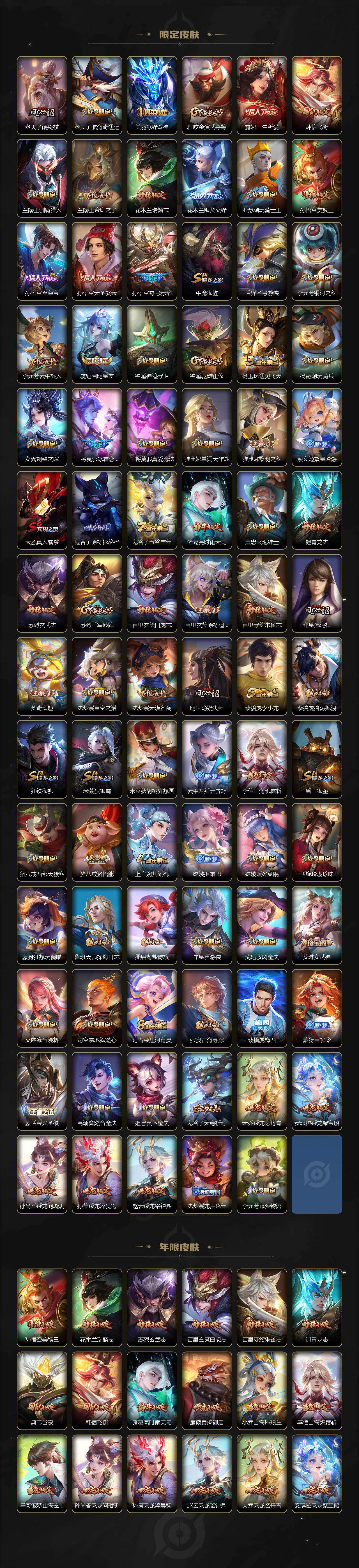 【英雄全皮】:廉颇全皮,元歌全皮,司马懿全皮,孙权全皮,鬼谷子全皮,苏烈全皮,猪八戒全皮,敖隐全皮,蒙恬全皮,戈娅全皮,空空儿全皮,影全皮