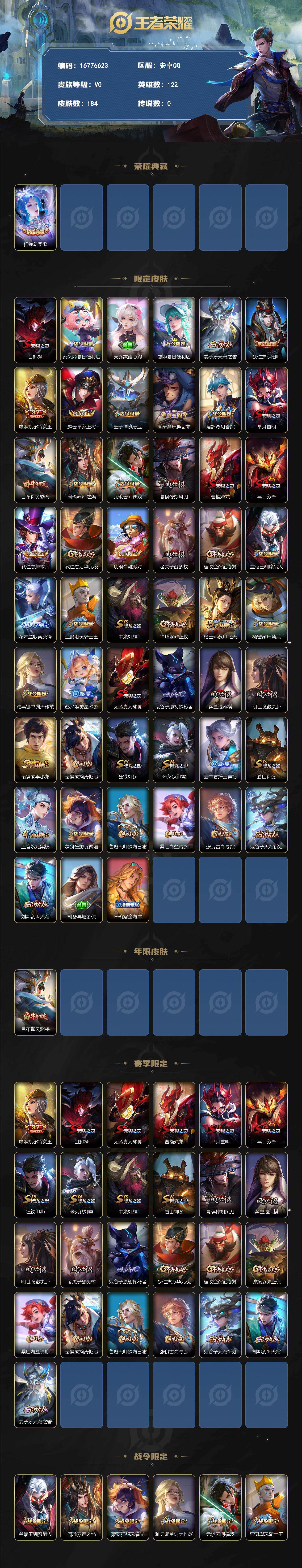 【16776623】安卓Q-V0-尊贵铂金I段位-122英雄-184皮肤-1典藏皮肤-27史诗