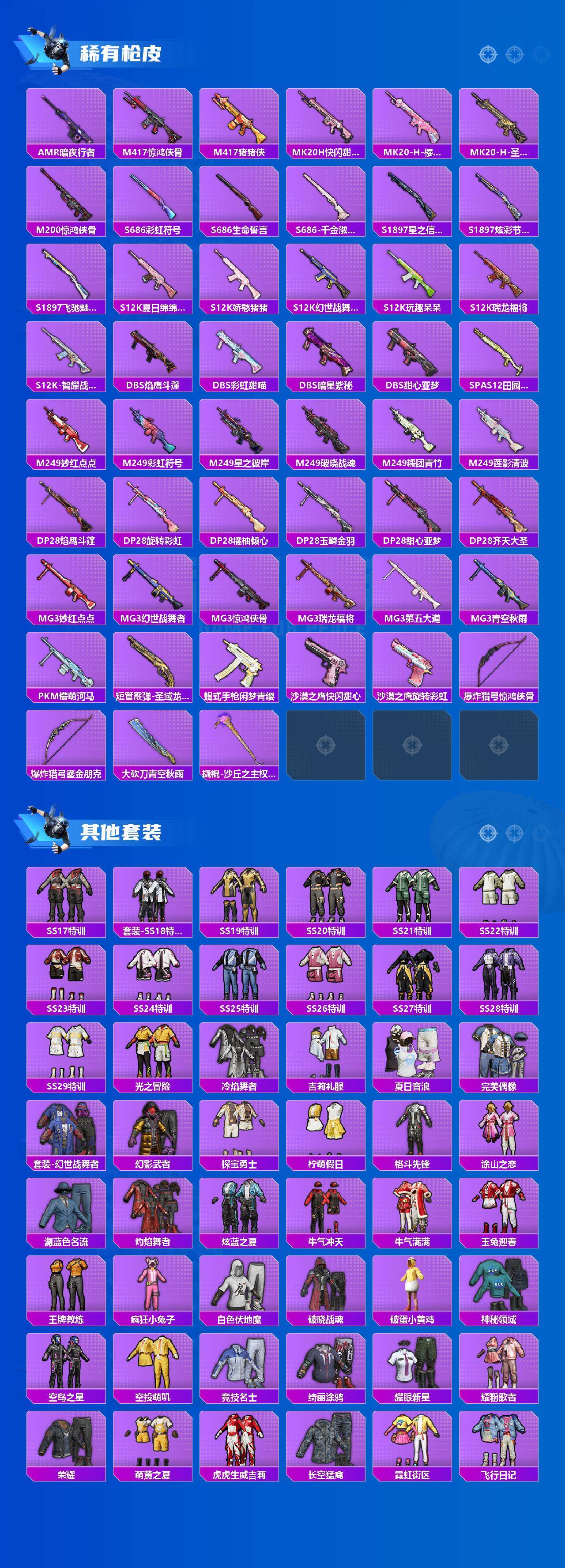 1神装-15粉装-8特效枪-2载具-4粉色飞行器-86316热力值-12王牌印记-162套装-245枪皮