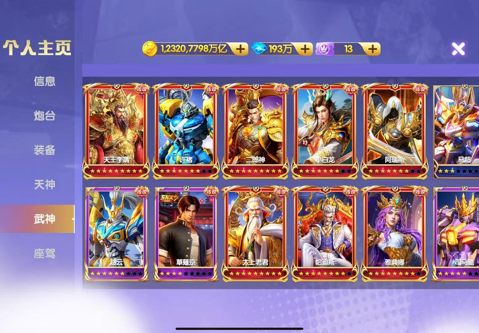 官方微信v22登录买断 出售1.23w京 加成10705天神彩武神一片红