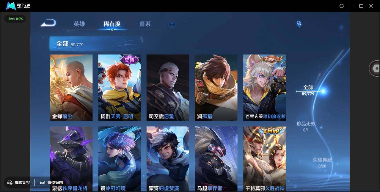 有二次-贵6-89英雄-89皮肤-8传说-34限定-27史诗-9按键-158夺宝幸运值-品质号-5印记-贵族积分12263