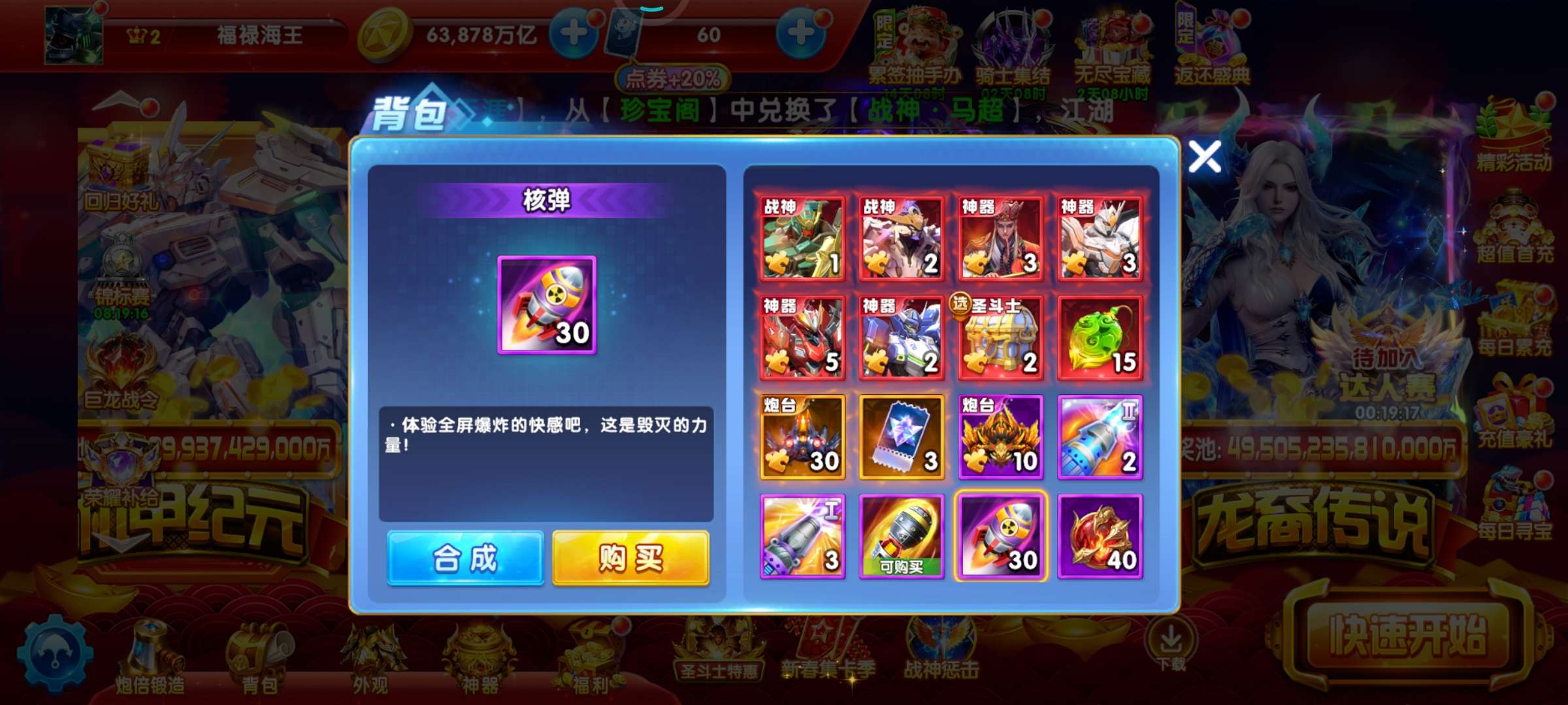 小米版带号出 贵v2 638万亿 60炮 带滋炮台 巅峰9级 狂暴2498 核弹30 激光5