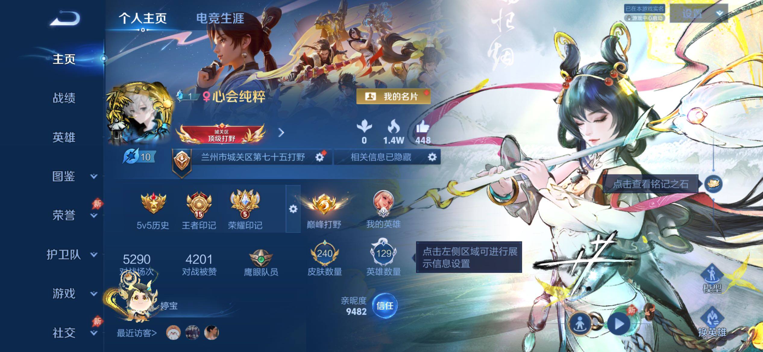 可换绑【极品高质量打野号·50段打野·国5裴擒虎1.4w·无双凯公孙离李白·典