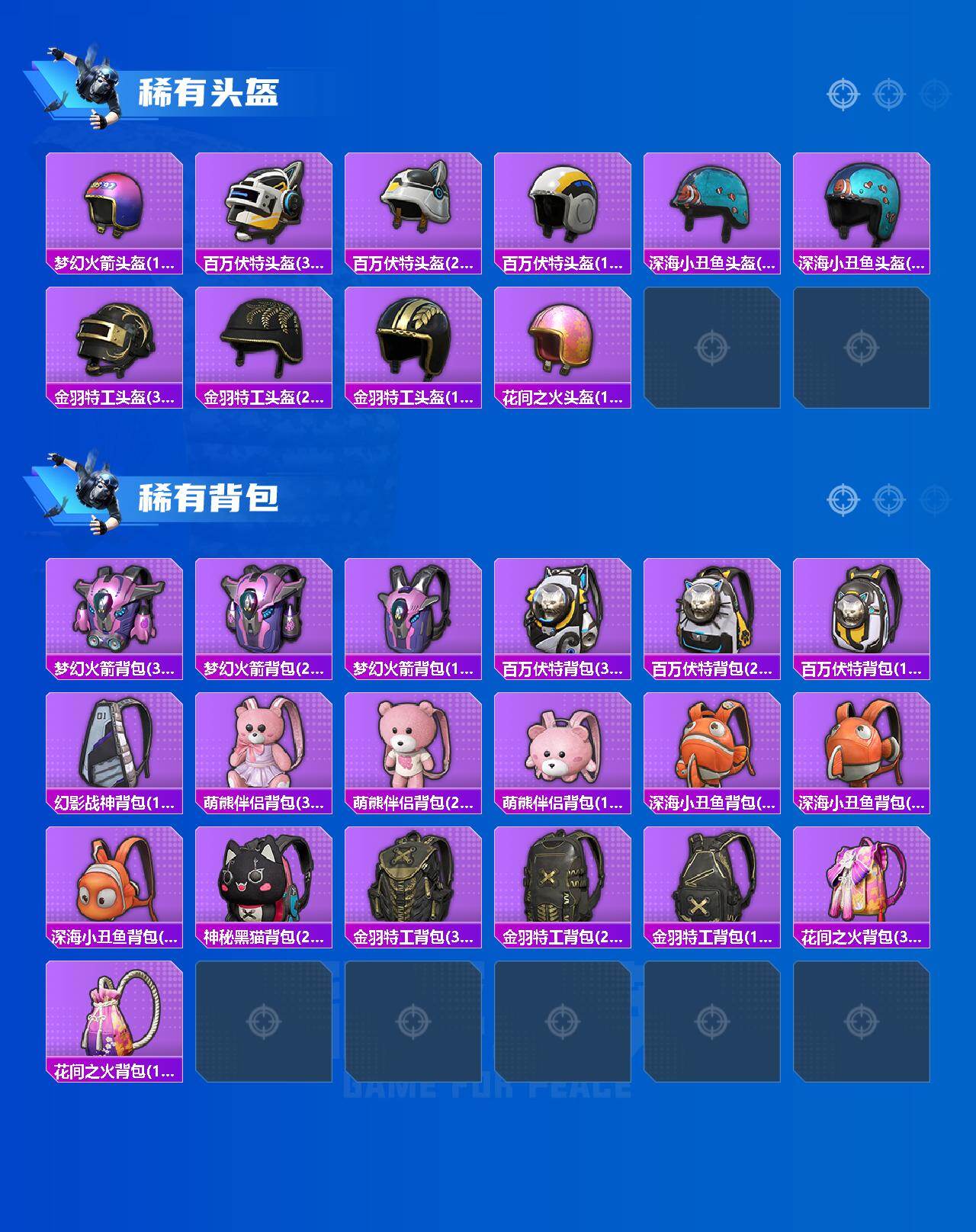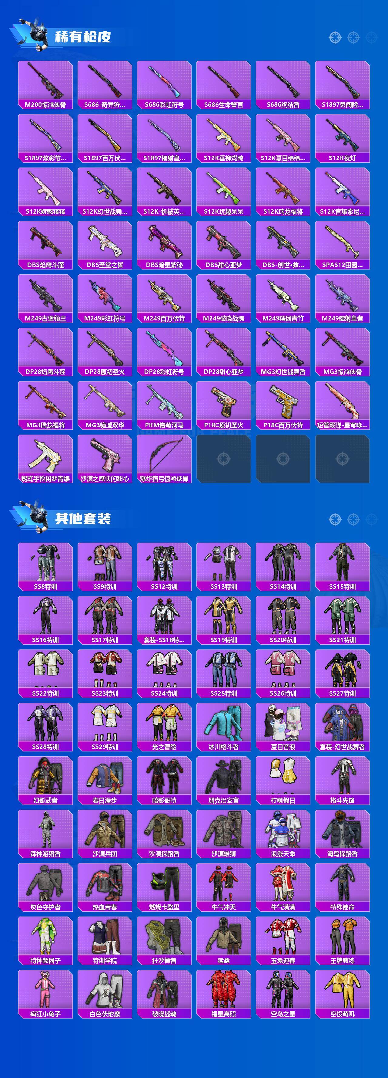 【热门品类】:粉装-梦幻火箭,套装-浪漫天命,套装-都市猎人,套装-派对舞王,套装-小丑鱼,套装-奇异狩猎者,套装-胖达圆圆,套装-天网终结者,套装-龟仙人,套装-暗影哥特,套装-浪漫波比,M416-星际漫游
