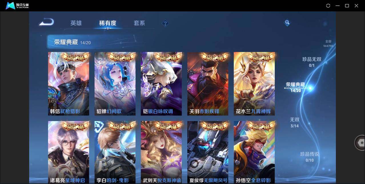 可二次-贵10-128英雄-564皮肤-15典藏(武则天)-3无双-92传说-4天幕-4星元-30按键