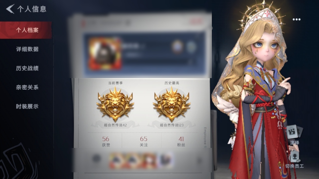 金色皮肤数量: 1 紫色皮肤数量: 4 道具皮肤数量: 9 段位: 超自然传说 员工: 逍遥,薇薇安