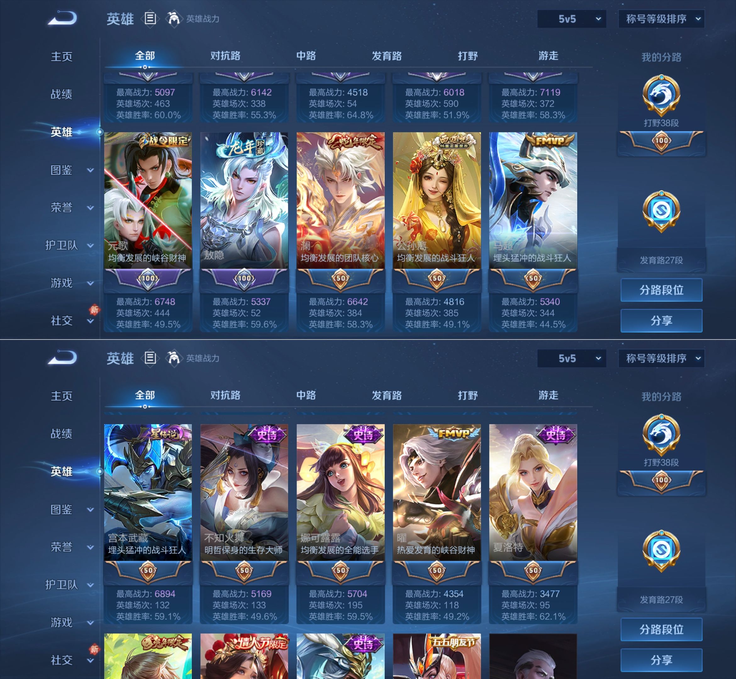 V7 1典藏 9传说 1星元 幽冥之眼打野38段对抗路25段发育路27段