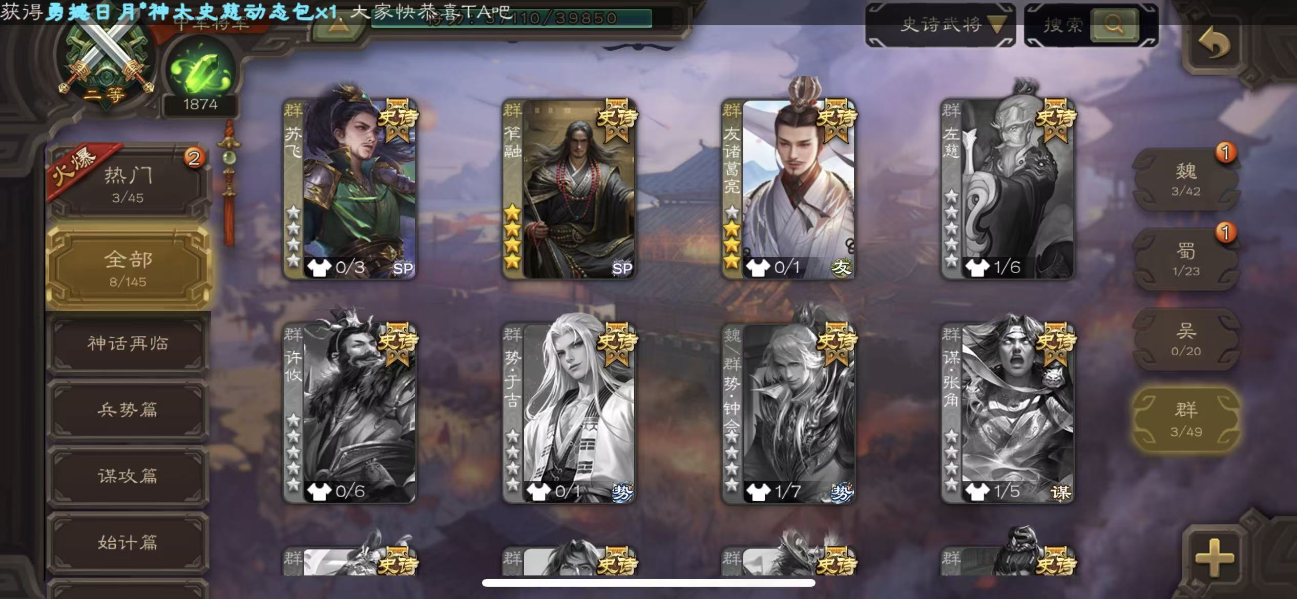 史诗武将数量: