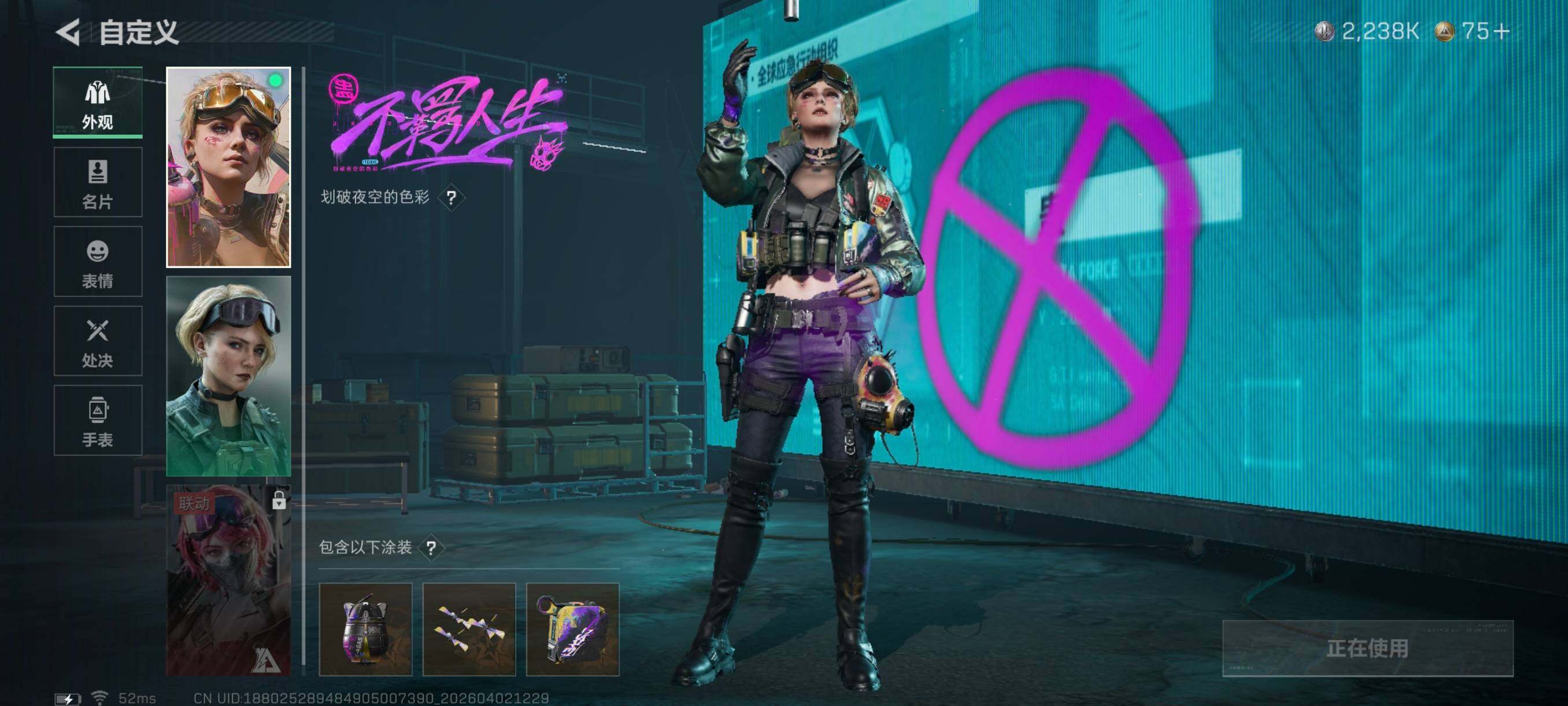 {特价出售}等级:60总资产:84.6M 纯币2238K 红皮:骇爪-水墨云图/骇爪-维什戴尔/乌鲁鲁-荒原猎手/蛊-不羁人生 刀皮: 近战-暗星/ 砖皮:MP7冲锋枪-电玩高手S2(极品A)/M7战斗步枪-棱镜攻势S2(优品C)/AS Val突击步枪-悬赏令(优品C) 特勤处:仓库8,训练7,靶场6