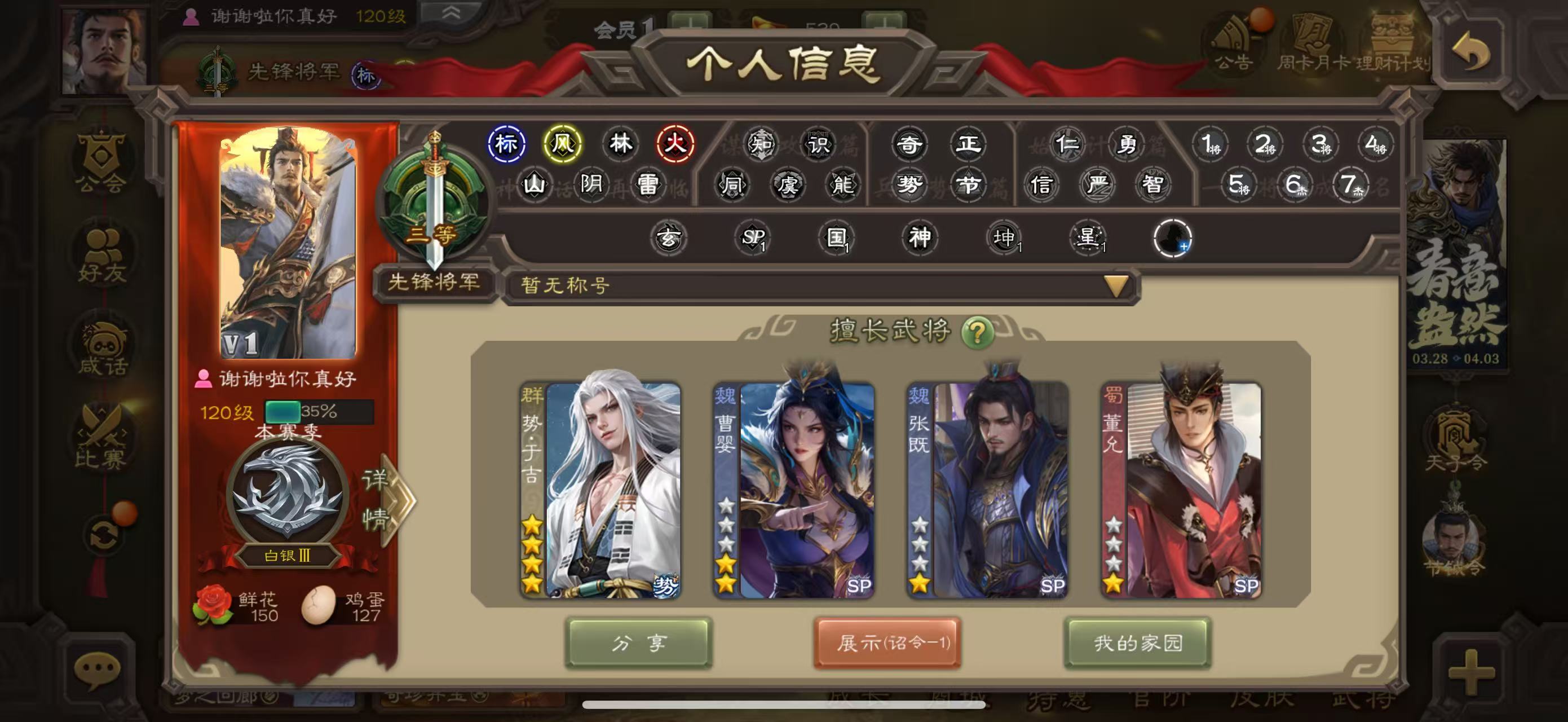 三国杀先锋将军势于吉,曹婴,董允3史诗,天宫带一个张既,带6w多羽毛。三卡材料多。