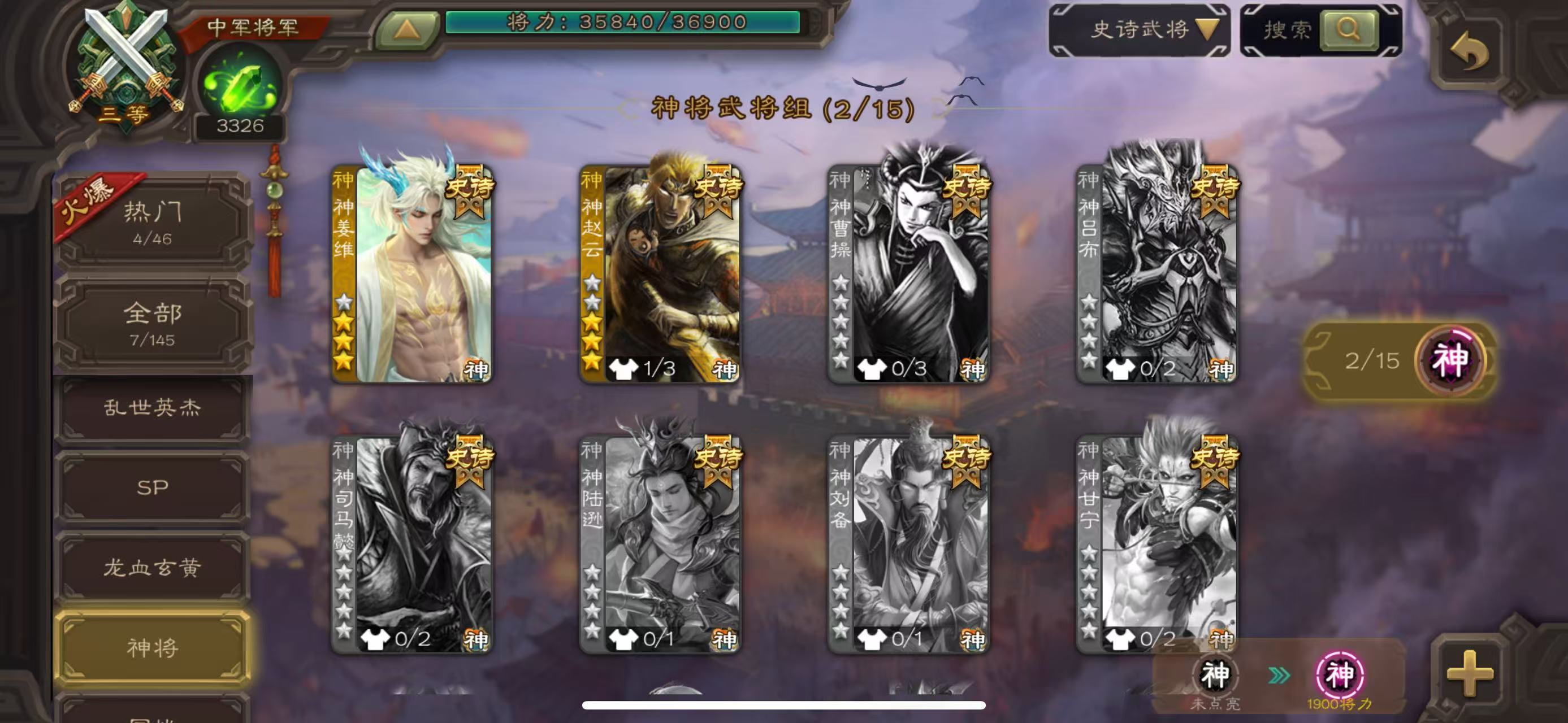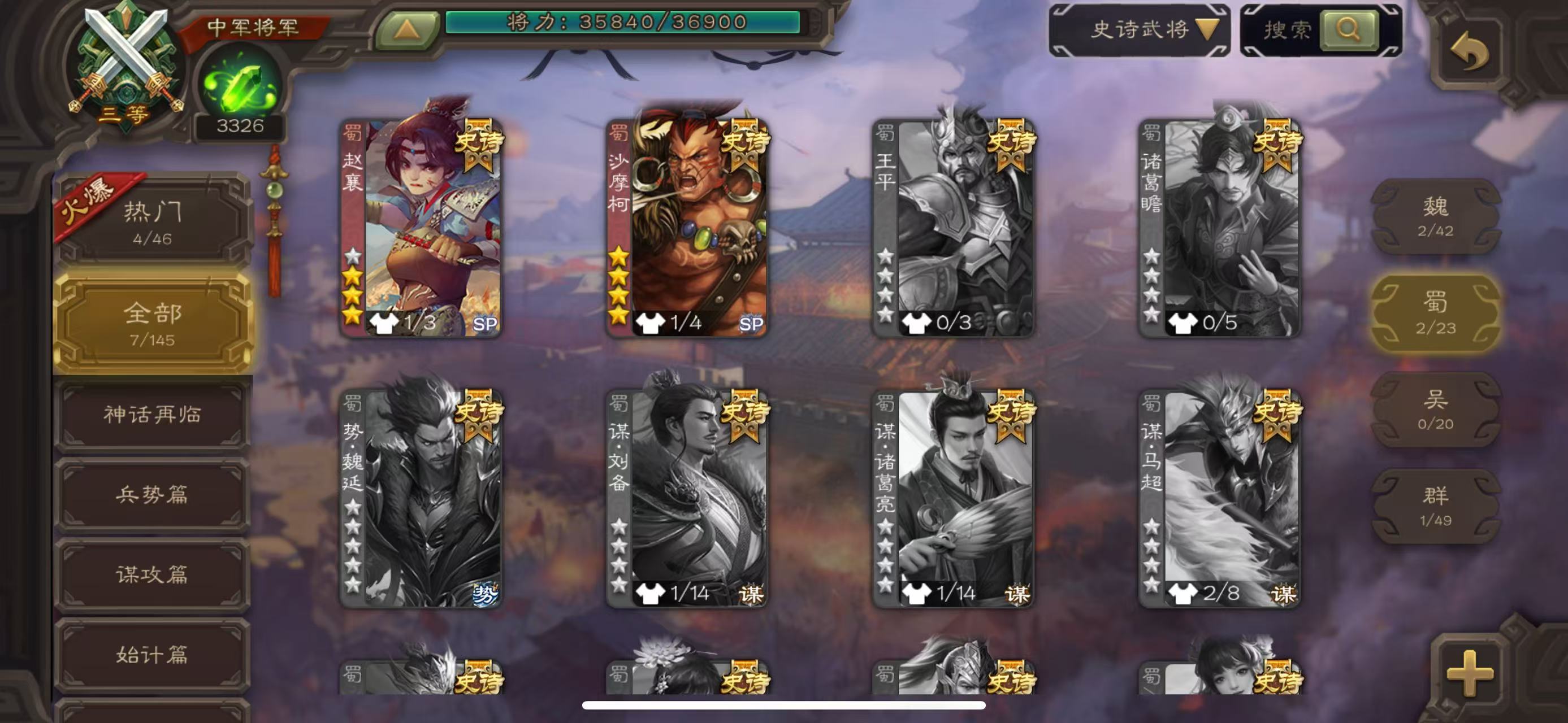 史诗武将数量: