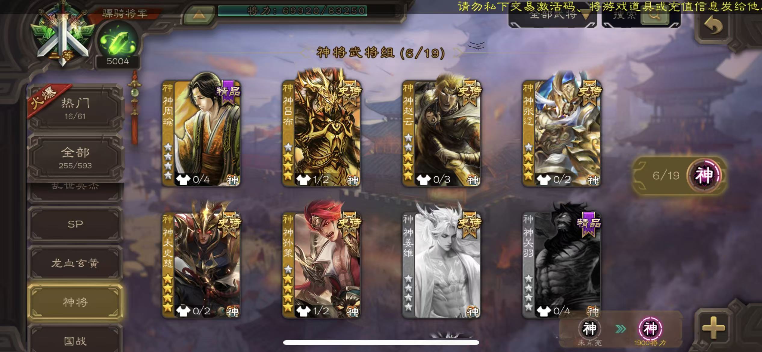 骠骑双形态全皮文鸯小鸟动神孙策动神吕布动大宝动白马神赵云戏志才神太史慈天子令曹丕友徐庶20史诗5千将魂5万羽毛三卡