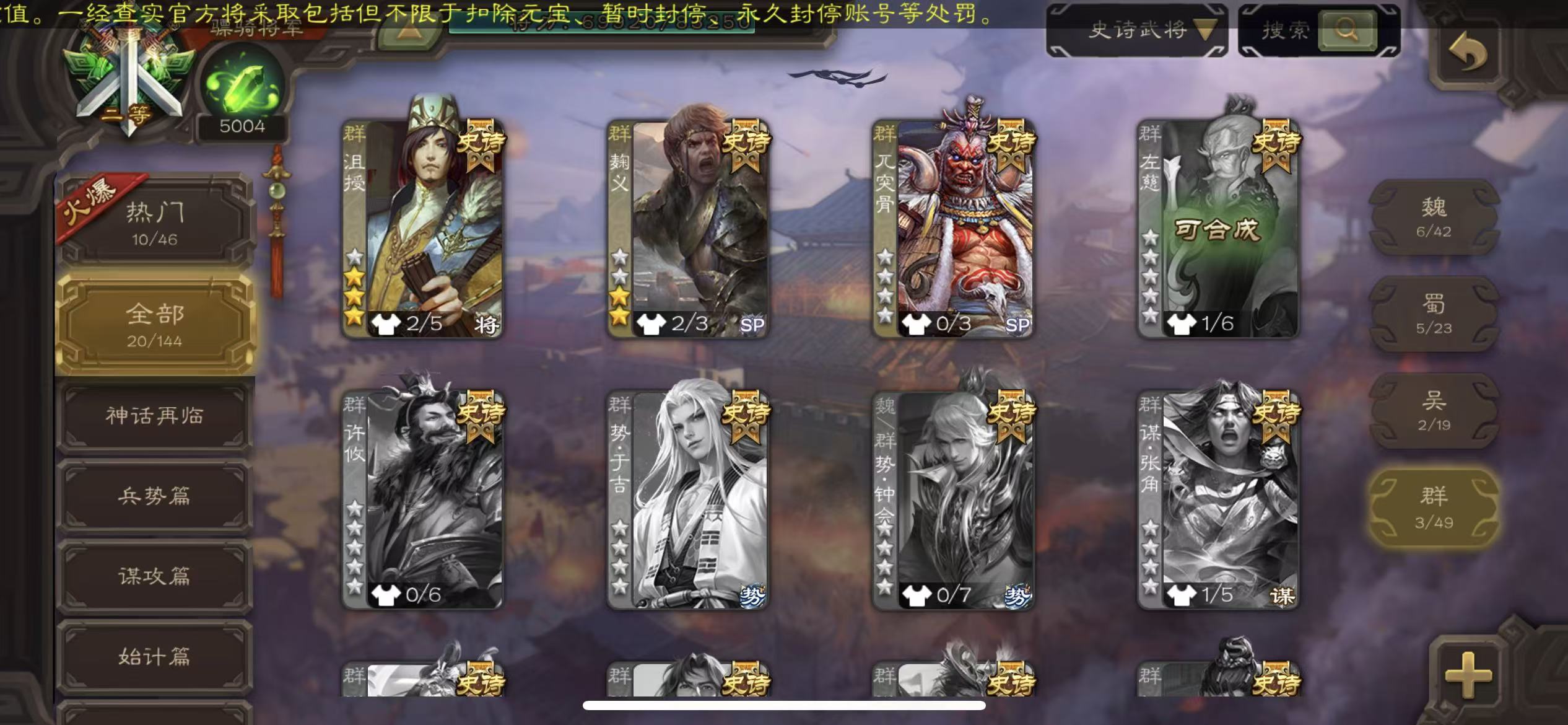 史诗武将数量: