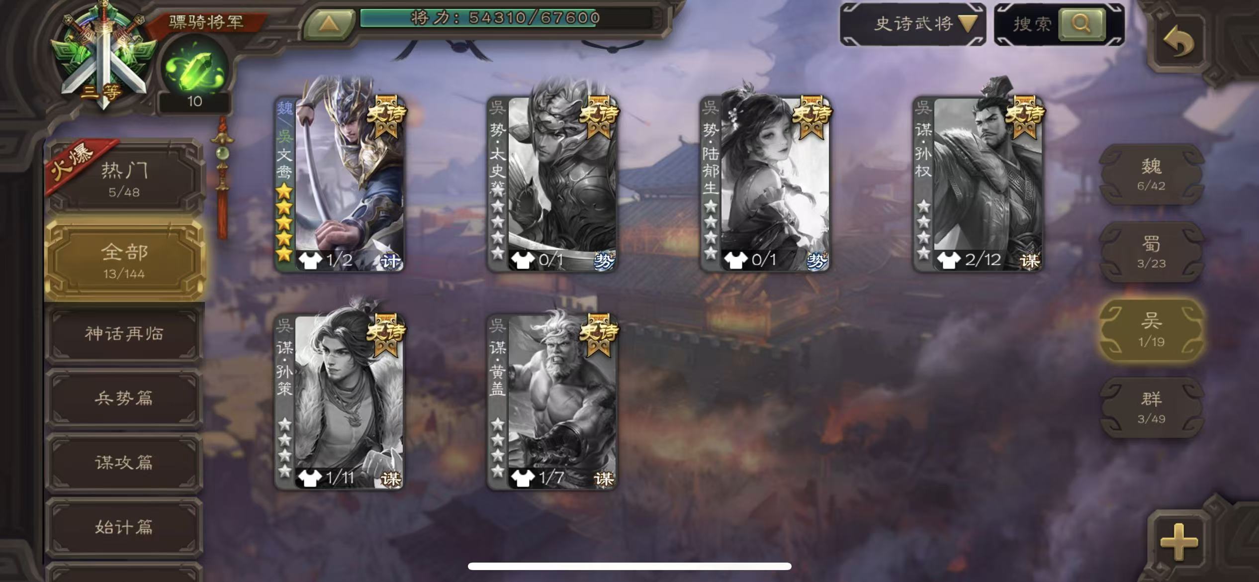 史诗武将数量: