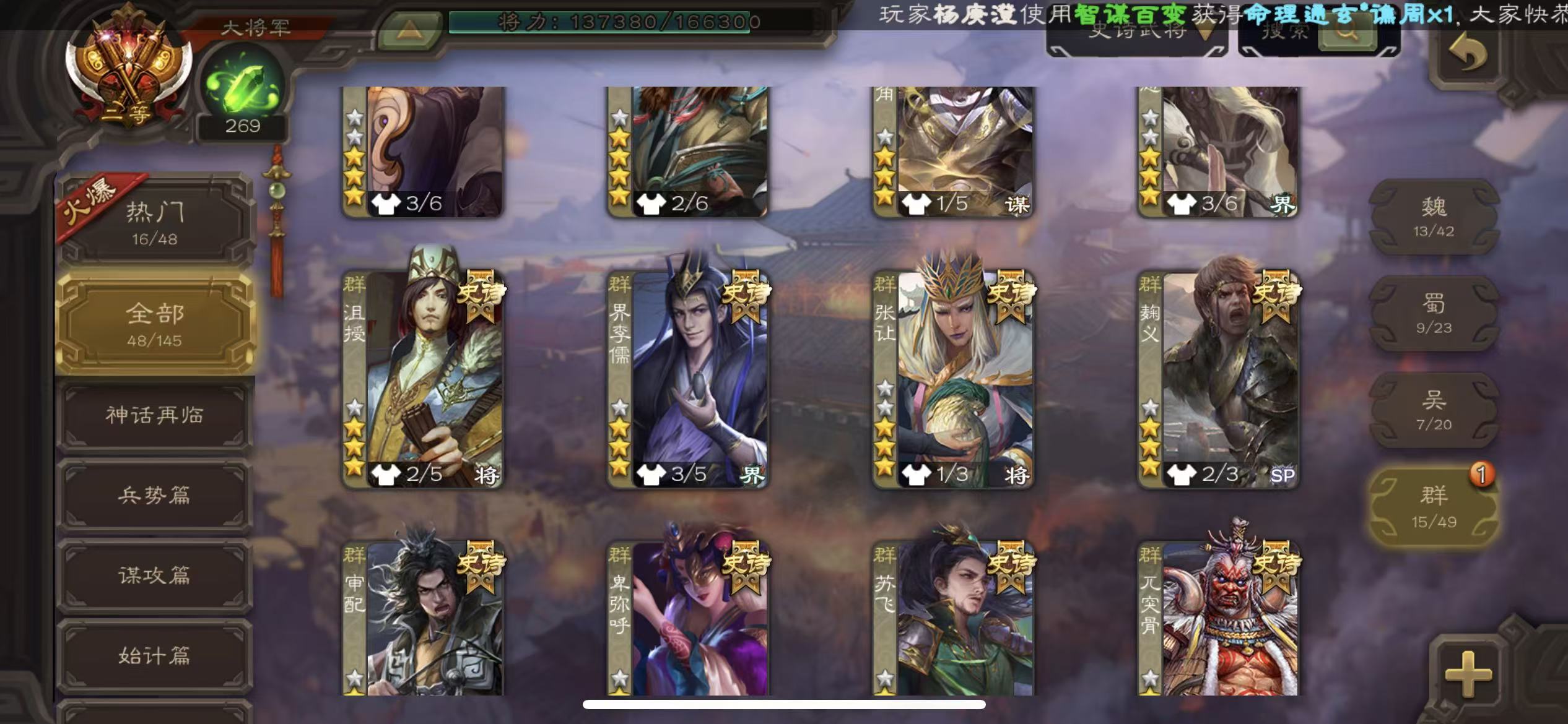 史诗武将数量: