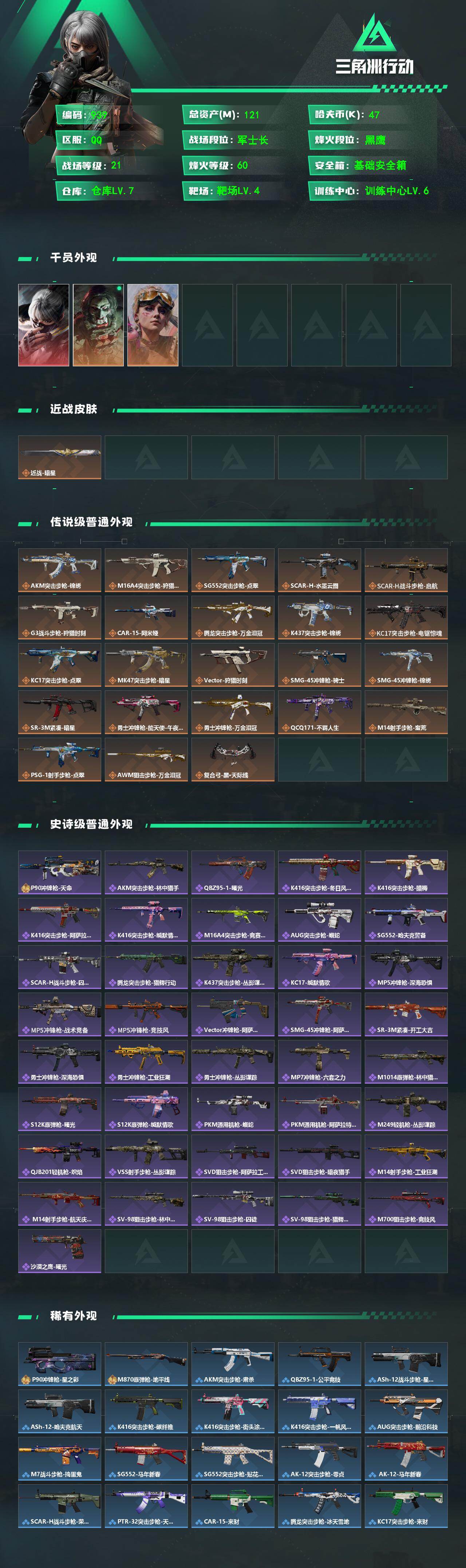 121m总资产-479k哈夫币-60烽火等级-黑鹰-21战场等级-军士长