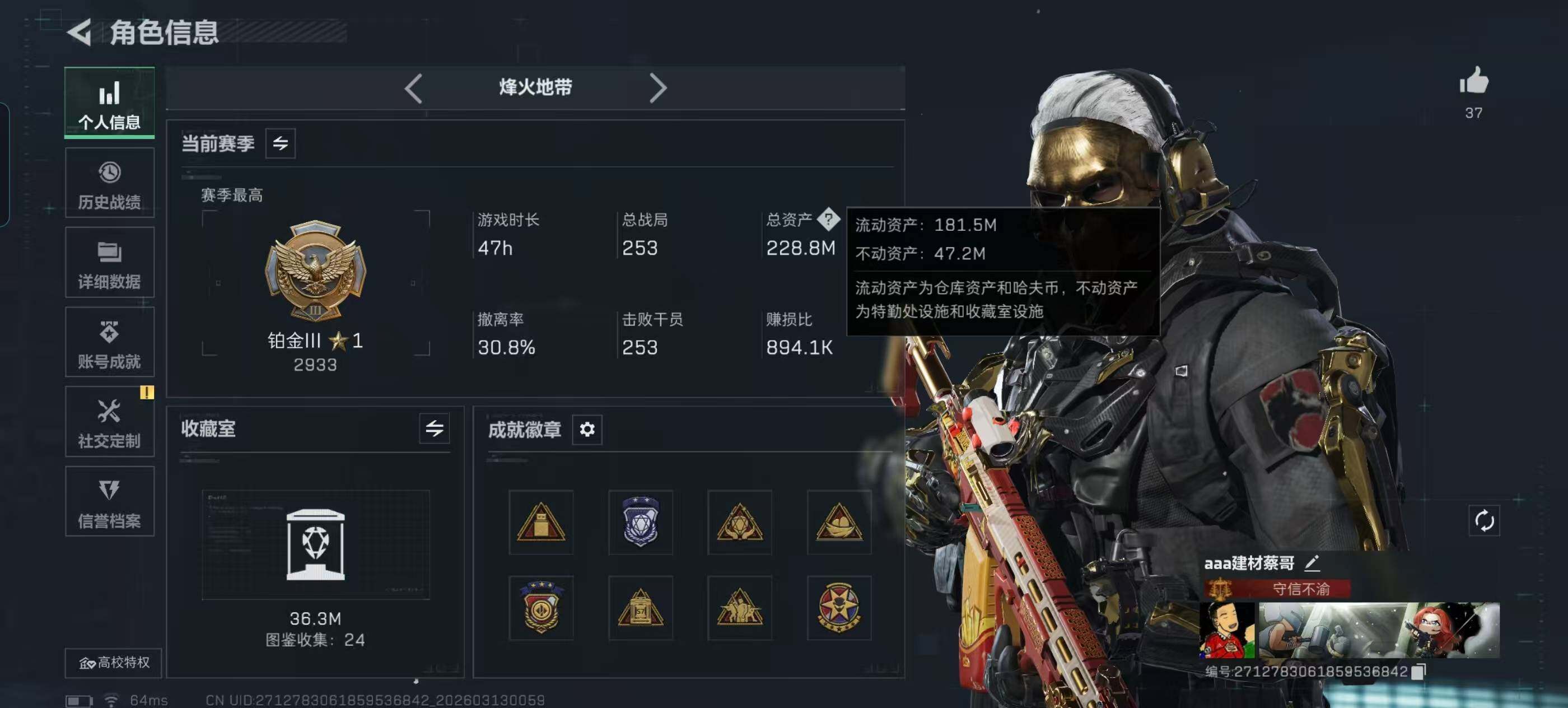 227m总资产-3176k哈伏币-60烽火等级-铂金-29战场