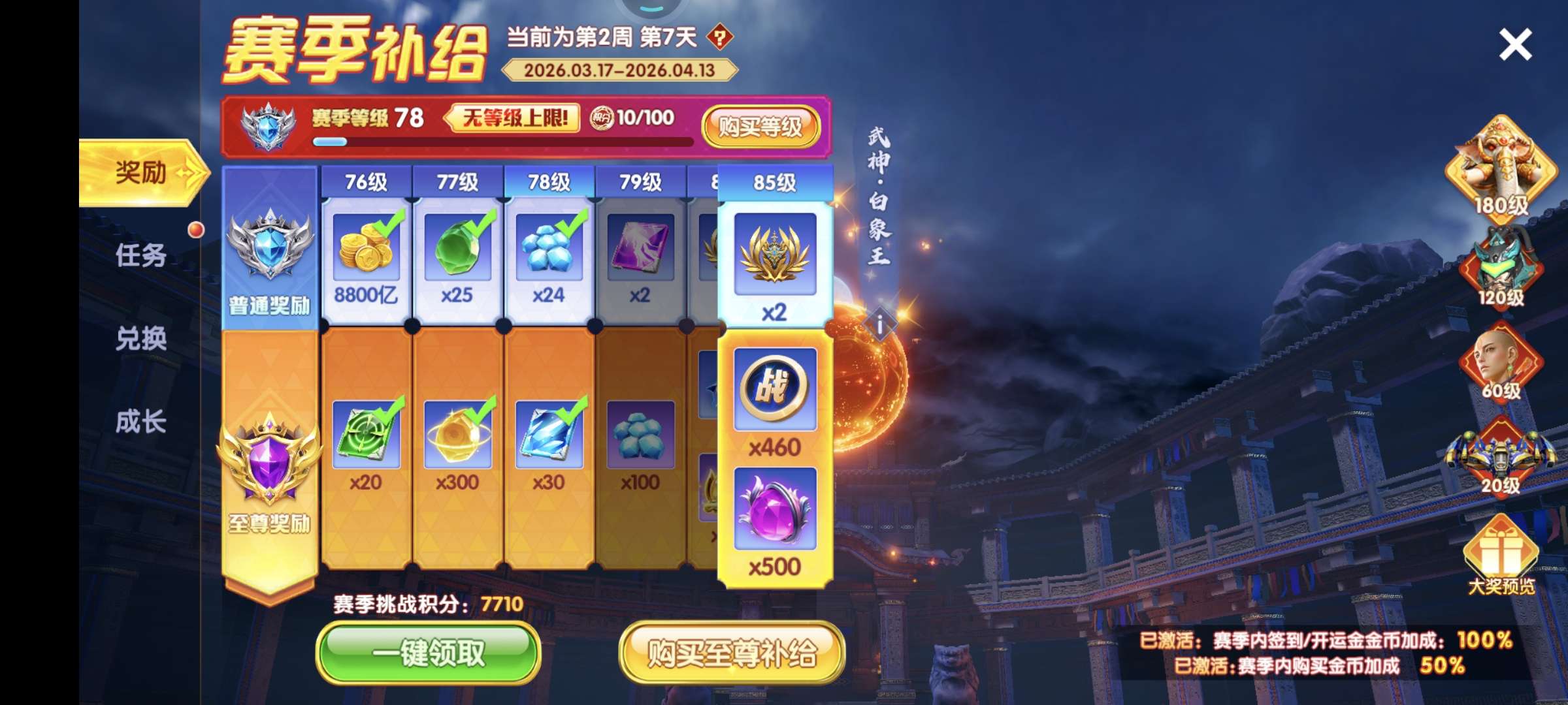 小米,1350京买断1.9比例,2.5w炮,黑炮8w,3级洪荒,爆率可查,双月卡,赛季补给