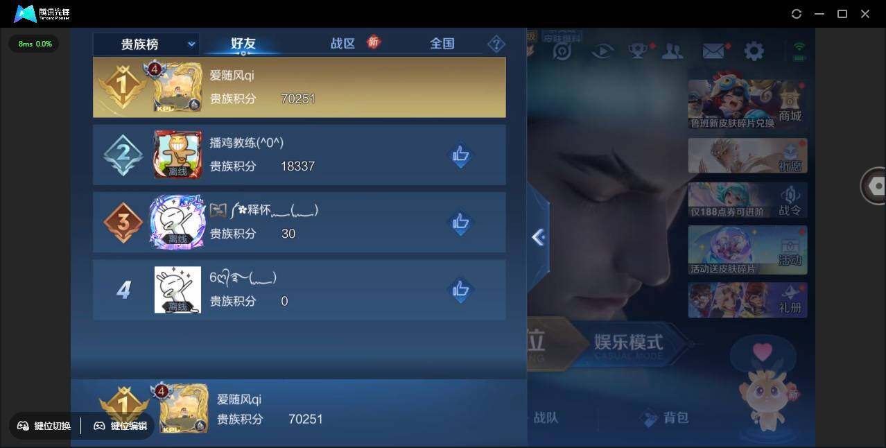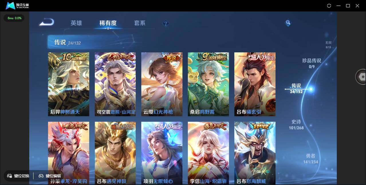 无二次-贵8-128英雄-322皮肤-1典藏-24传说-118限定-101史诗-2星元-3957星币-19按键-百朵花花-144夺宝幸运值-满铭文品质号-18印记-贵族积分70251