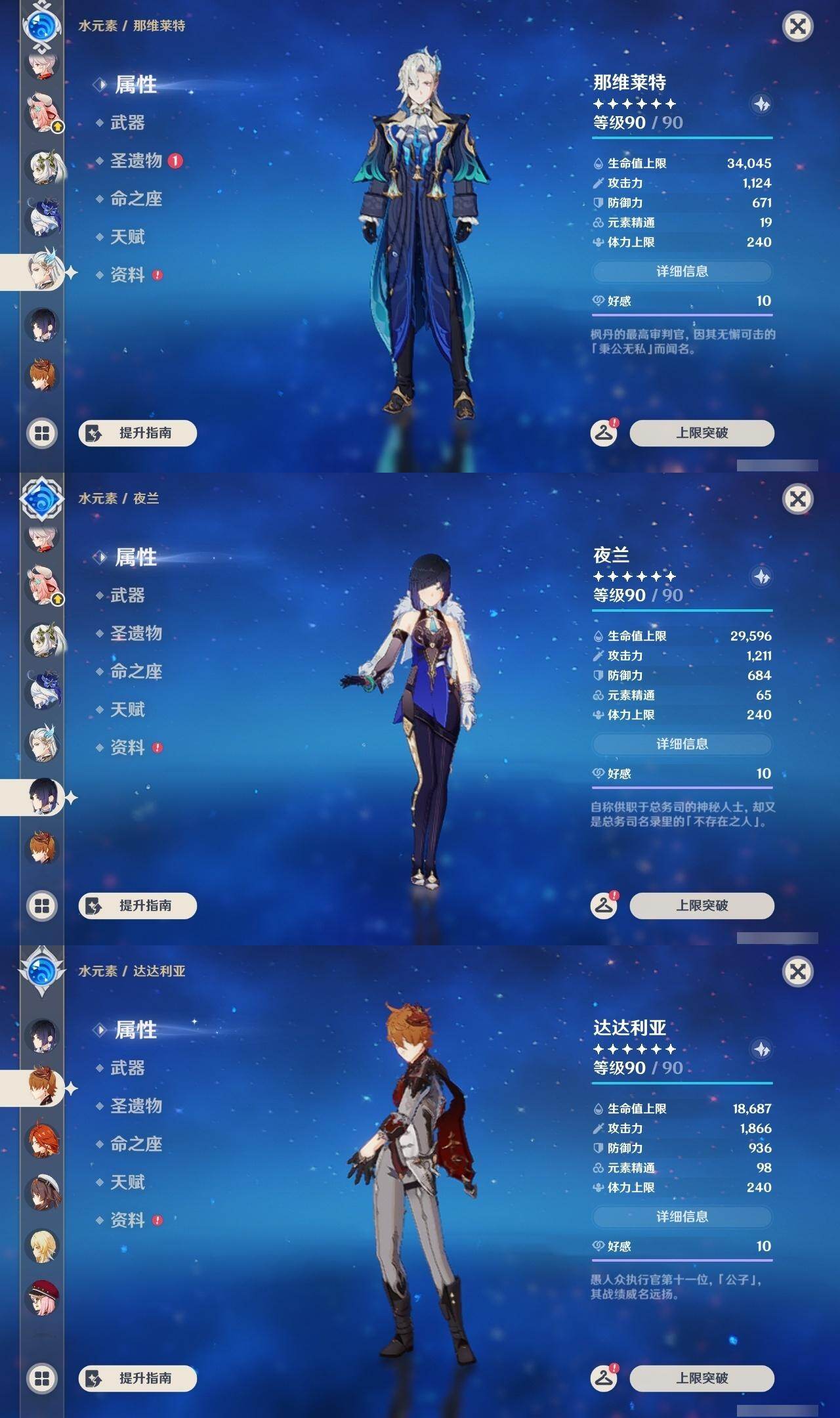 0命阿蕾奇诺,0命娜维娅,2命芙宁娜,0命莱欧斯利,1命那维莱特,1命迪希雅,0命纳西妲,2命提纳里,1命夜兰,0命枫原万叶,0命钟离,1命胡桃,0命达达利亚,1命刻晴,1命七七,0命琴,1命莫娜,2命迪卢克,1命玛薇卡,0命瓦雷莎,1命杜林,精1赤月之形,精1静水流涌之辉,精1万世流涌大典,精1若水,精1神乐之真意,精1冬极白星,精1护摩之