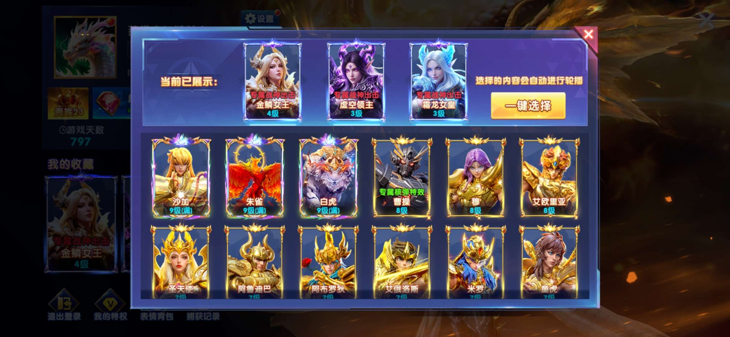 金币加成2273,返点84概率,龙女433,天使766,白虎朱雀满级,救济金3.85兆