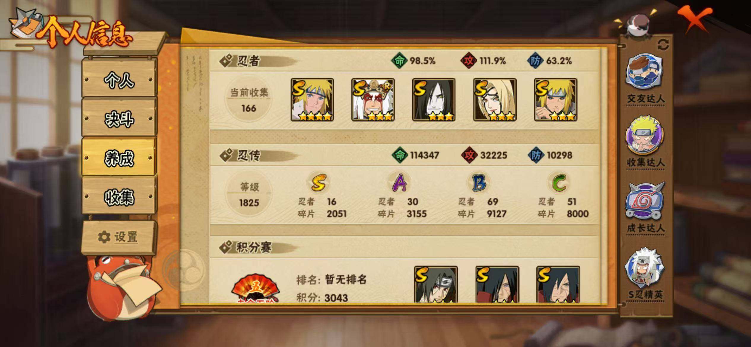 V8/战力808W/S忍16/A忍30/通灵兽18/