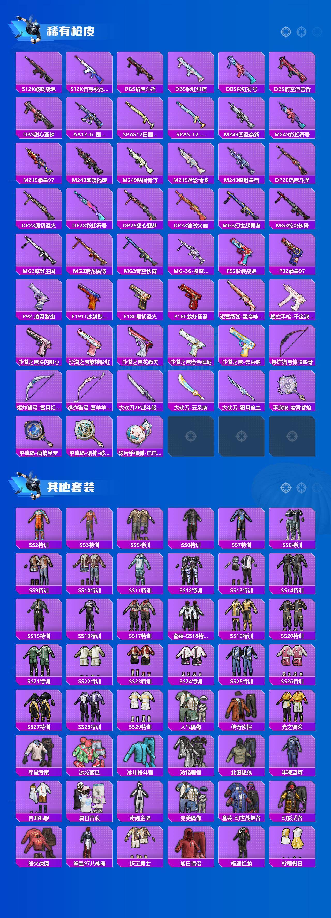 【HP2778】273套装/枪械12/装备484/载具2/战备277/王牌印记25/热力值121849/七级AKM-梦之光华/五级SCAR-L-锦绣绵绵/七级M416-风花雪月/五级GROZA-镜光银凌/五级AUG-暖羊咩咩/四级ACE32-萌骑漫游/五级汤姆逊-热量炸弹/三级P90-诸神·破晓/五级Kar98K-巳巳如意/五级DP-28-豹影疾电/七级MG3-酷泡奶龙/三级PKM-萌骑夺宝/粉装-梦幻火箭/粉装-缤纷油彩/套装-浪漫天命/套装-派对舞王/套装-小丑鱼/套装-奇异狩猎者/角色-2