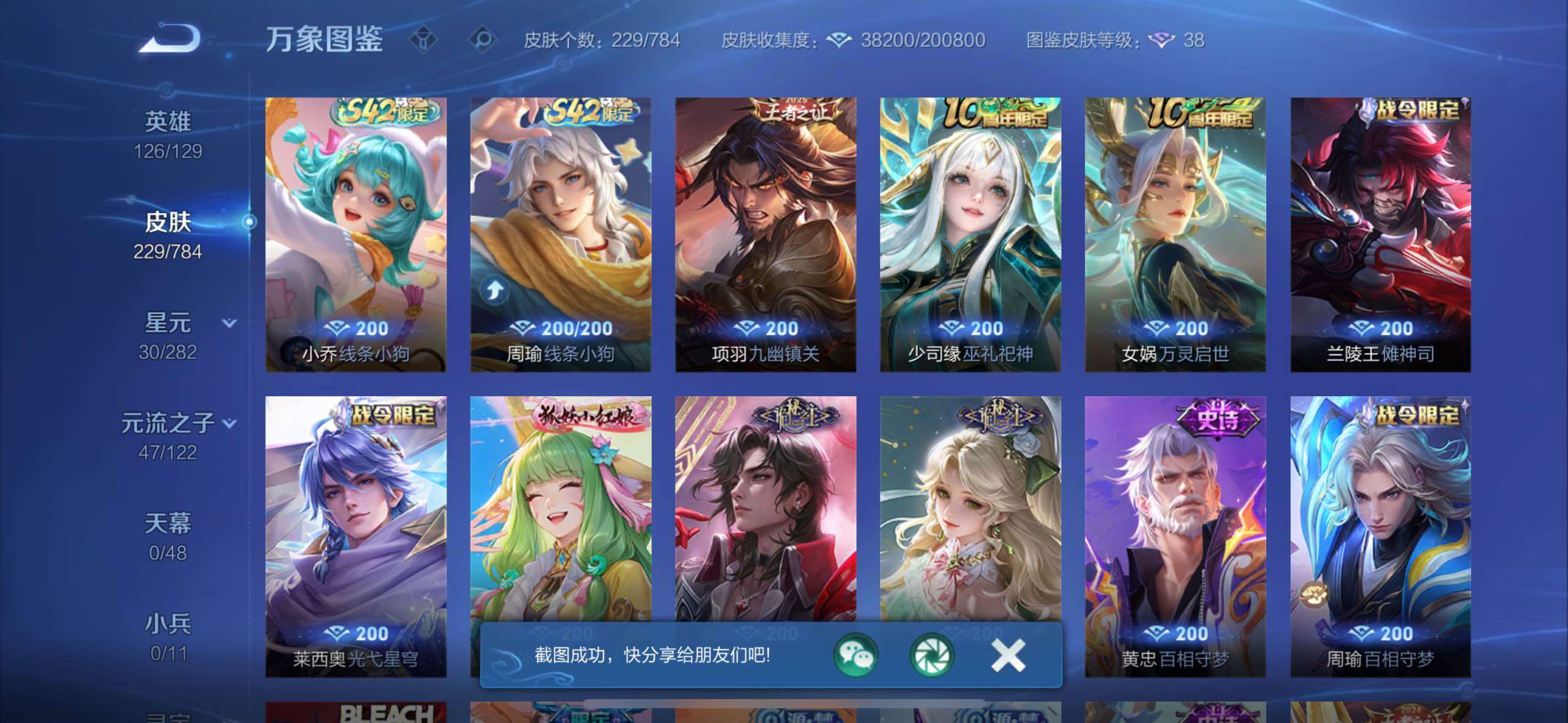 普通社交限制【店铺主推·3无双·神鉴启示录·天机白泽·器灵螭龙剑·碎月剑心·神骥越千峰·诡秘之主·死亡执政官·愿照九州拓·山海苍雷引·深海之息·可二次】YXw20721-苹果WX-126英雄-229皮肤-15王者印记-190铭文-贵族积分5w【贵族8】【1典藏·3无双·1星传说·20传说·25按键】【因赛季更新游戏段付以上号为准!】