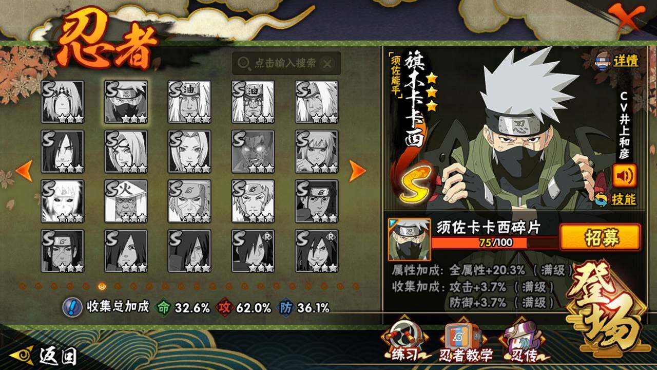 可免费转苹果 V9 413万战力 9S-19A 卡卡西75片 传说自来也53片
