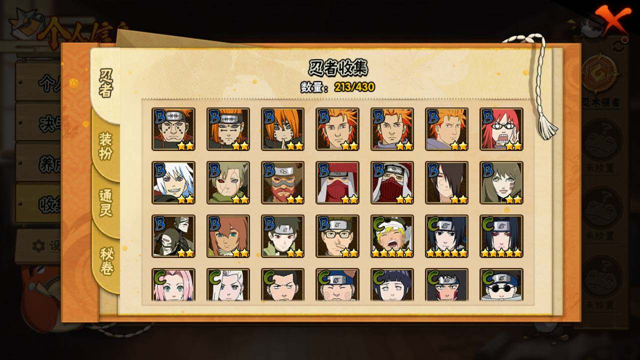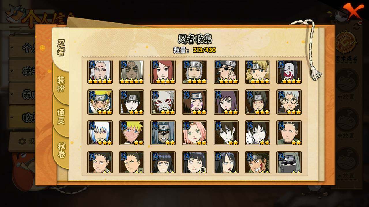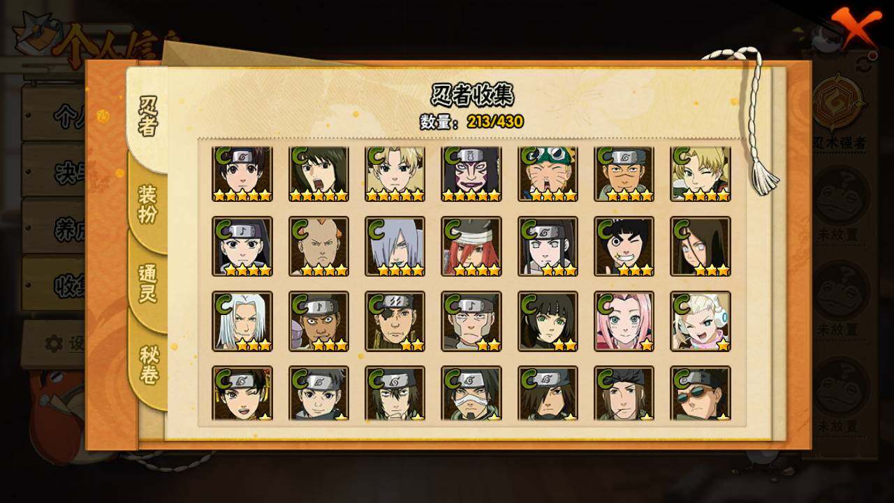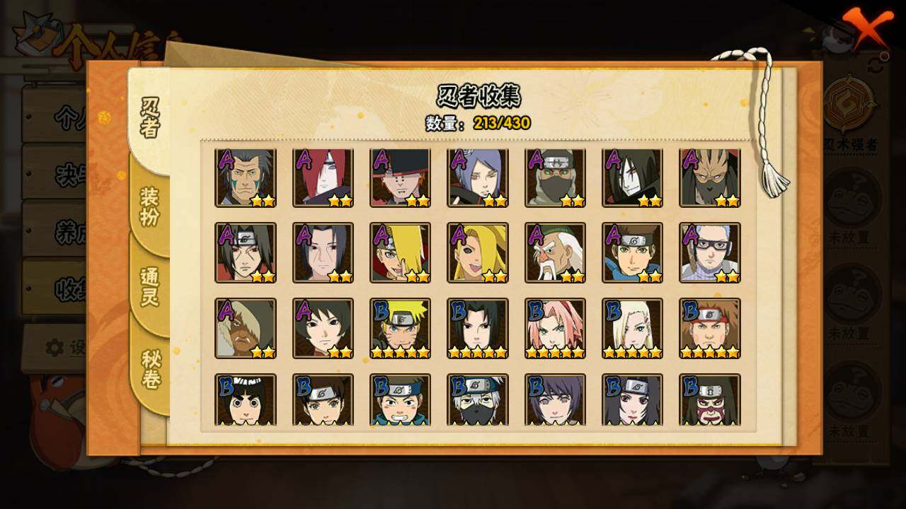 【S级忍者】:长门「秽土转生」(3星),猿飞日斩「秽土转生」(3星),波风水门「秽土转生」(3星),千手扉间「秽土转生」(3星),千手柱间「秽土转生」(3星),宇智波斑「秽土转生」(3星),春野樱「忍界大战」(3星),宇智波带土「忍界大战」(3星),宇智波鼬「须佐能乎」(3星),旗木卡卡西「须佐能乎」(
