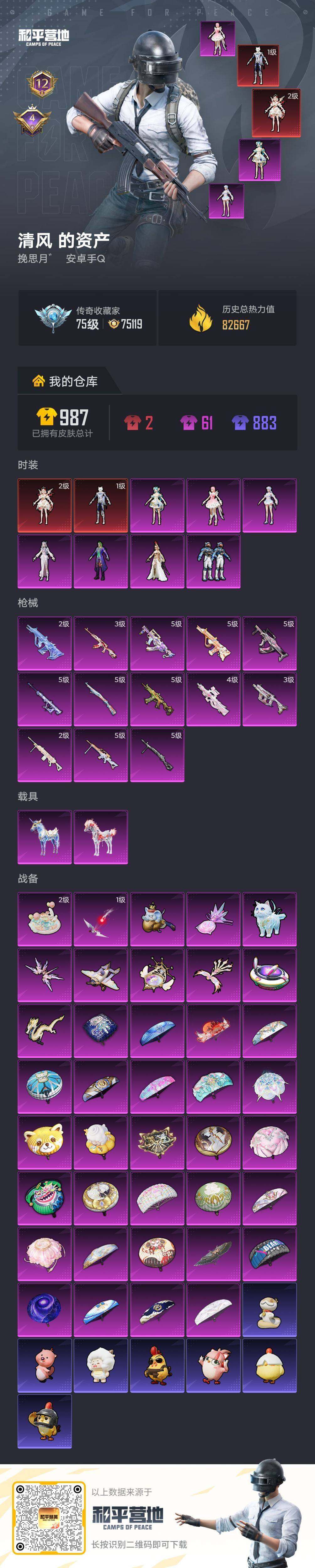 2神装-7粉装-13特效枪-2载具-11粉色飞行器-82667热力值-12王牌印记-160套装-279枪皮