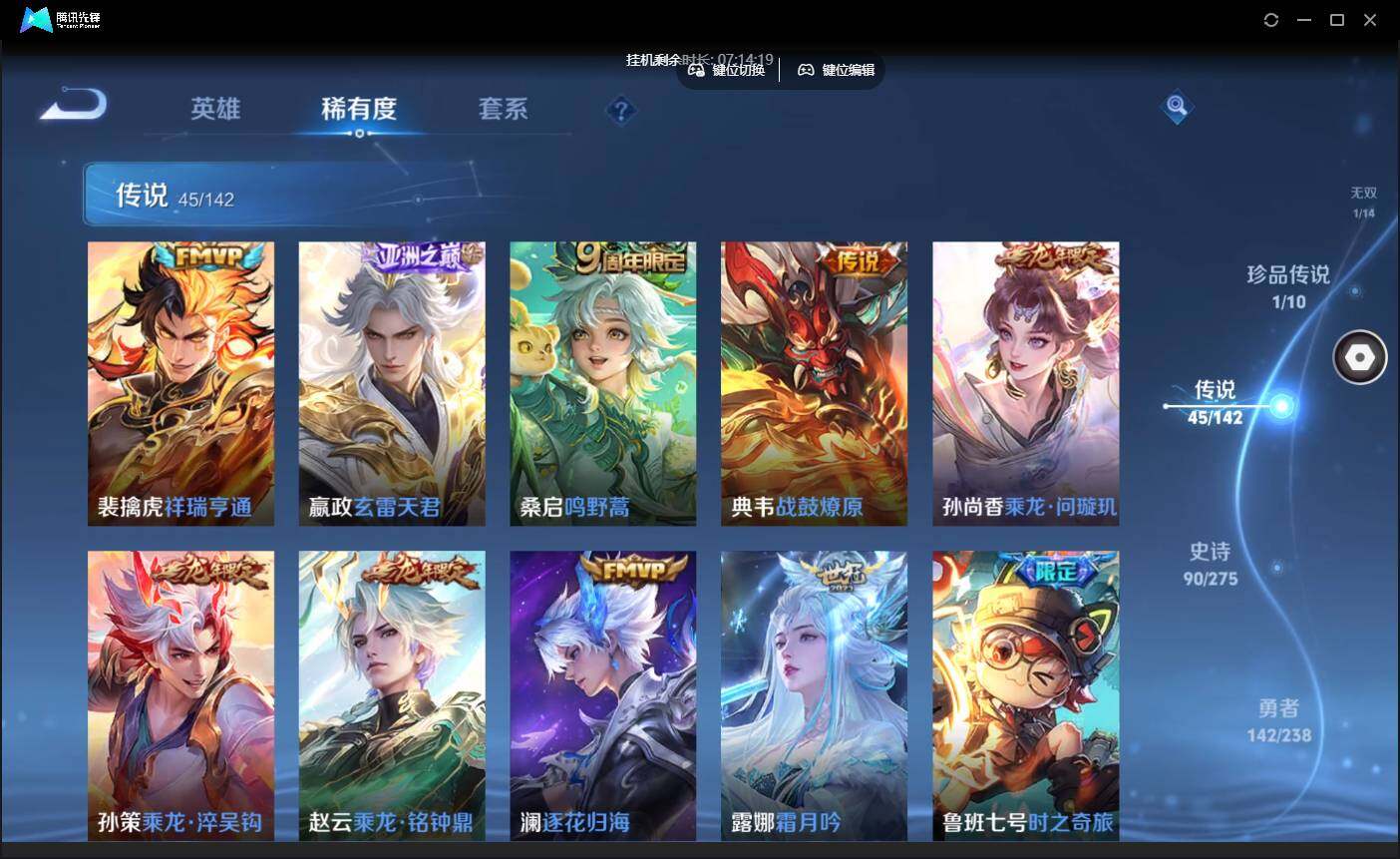 贵9-128英雄-338皮肤-4典藏-1无双-1珍品-2星元-45传说-21按键-贵族积分12.8w