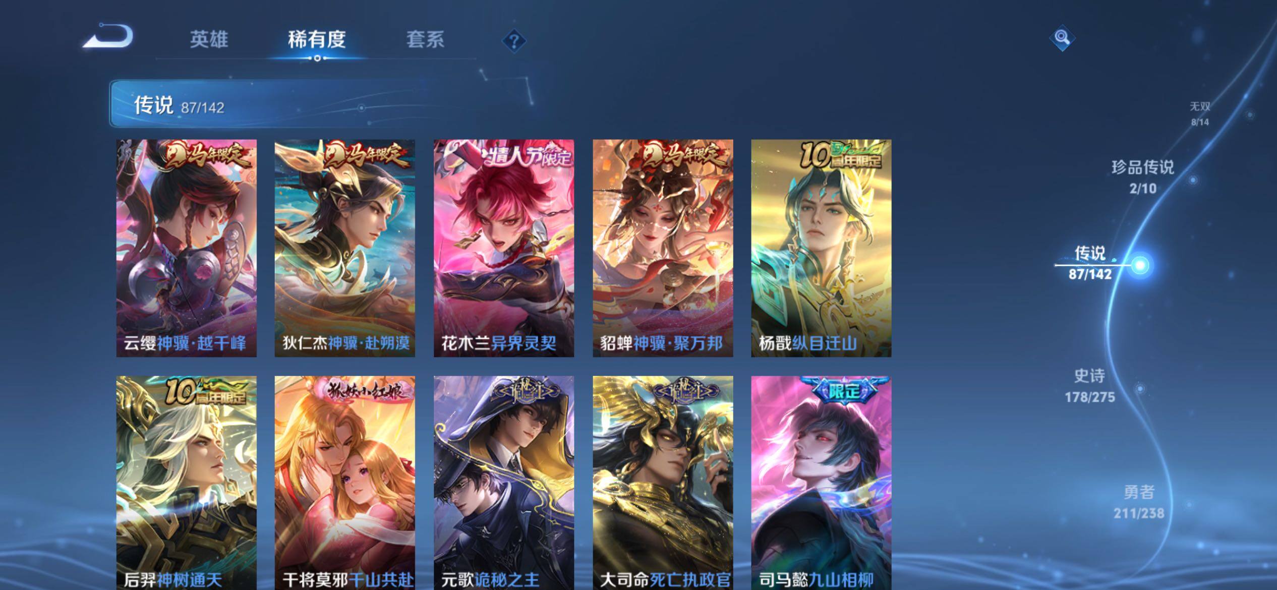 V10-571皮肤-4典藏皮肤-8无双-2珍品传说-87传说-177史诗