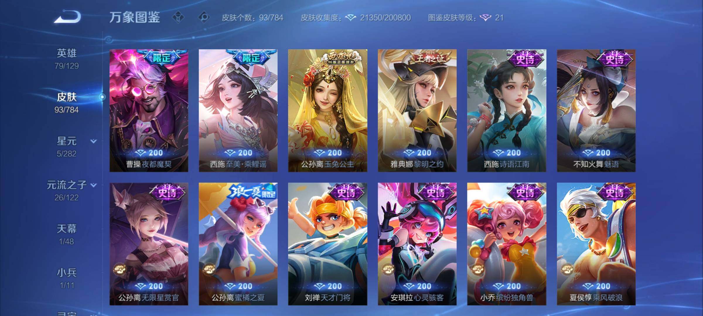 V8-93皮肤-1典藏皮肤-1珍品无双-1无双-2珍品传说-12传说-30史诗